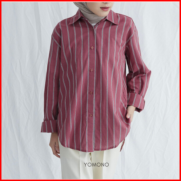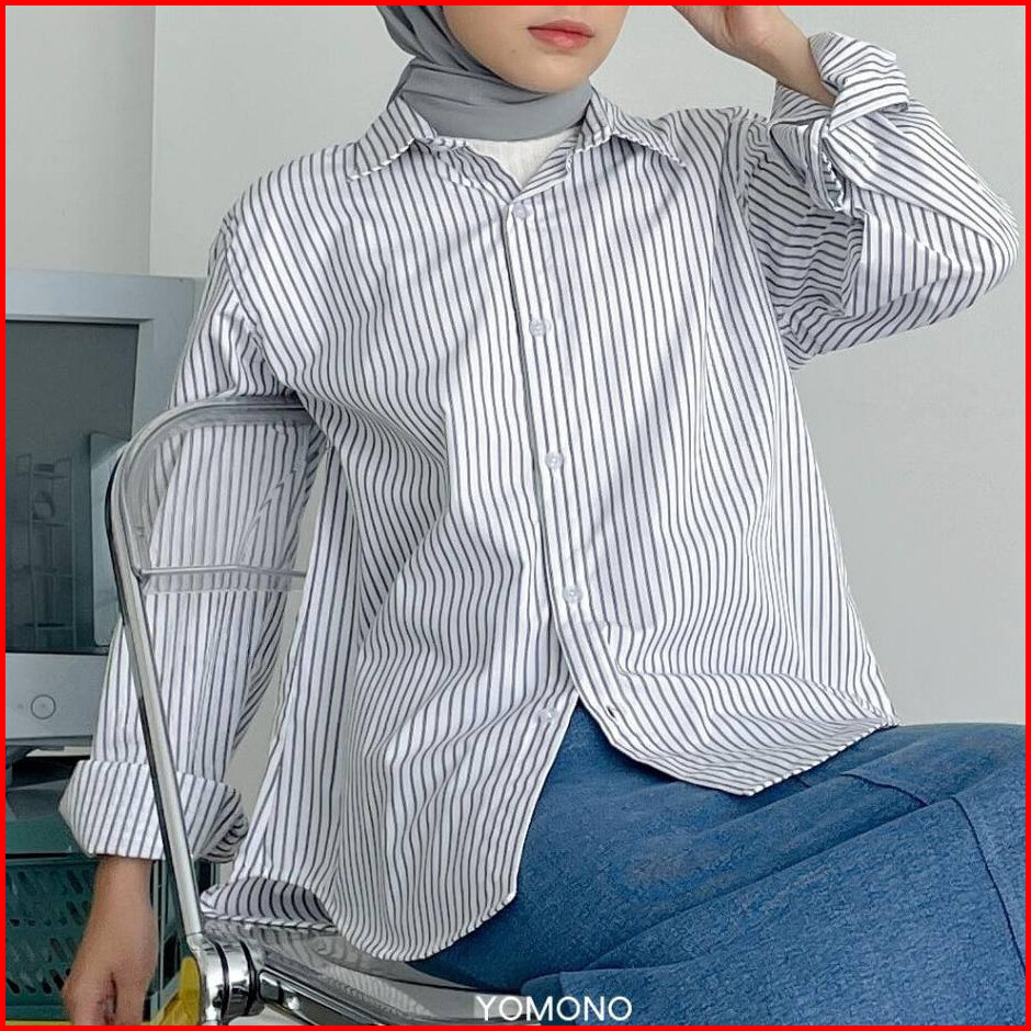 Yomono - Kemeja Stripe Wanita Comfy Shirt