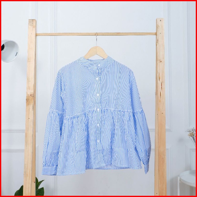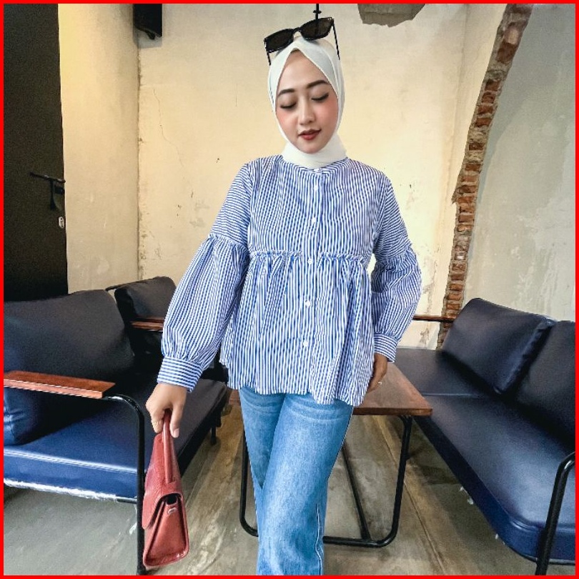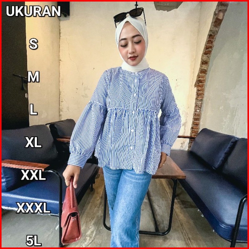 Ellen Kemeja Wanita - Kemeja Stripe - Kemeja Salur Wanita - Kemeja Salur Jumbo - Kemeja Wanita Korean Style -busui - Big