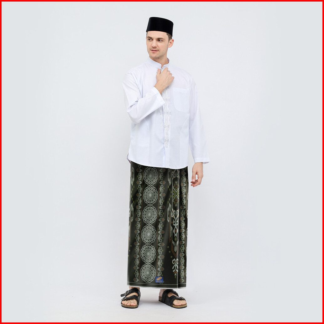Sarung Atlas Universal 635 Kembang Motif A5 Peh Olive Tua