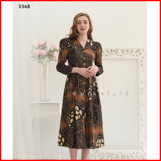 Pikoi Id Long Dress Batik Wanita Modern Maxi Dress Lengan Panjang Long Dres Panjang 3348 258