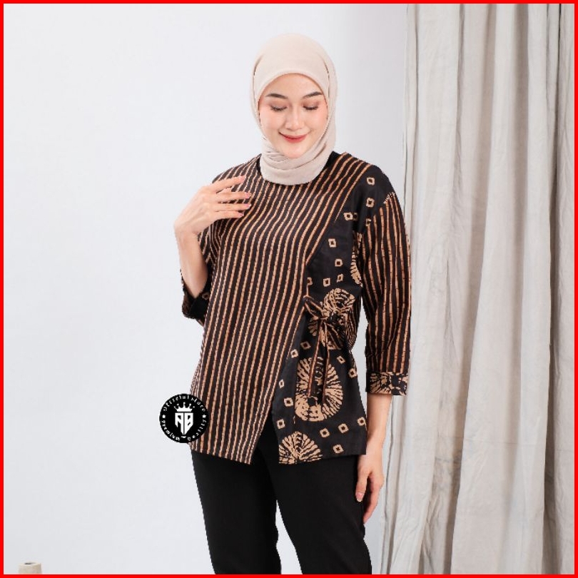 Bloue Batik Wanita Kerja Kantor Modern Lengan 3 4