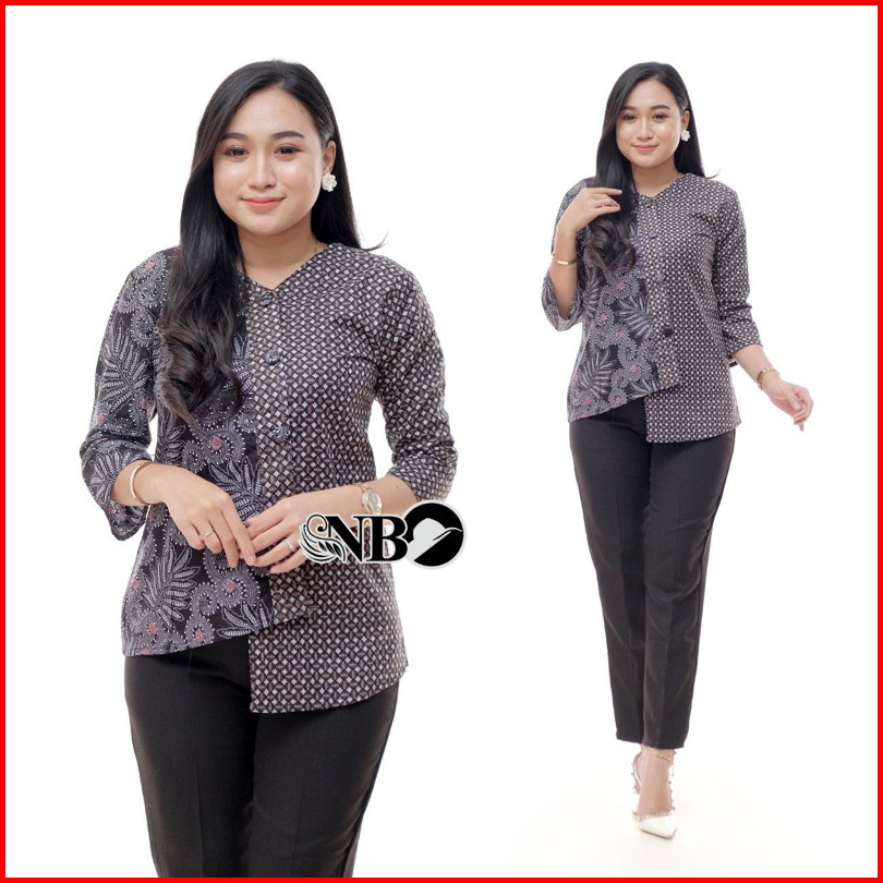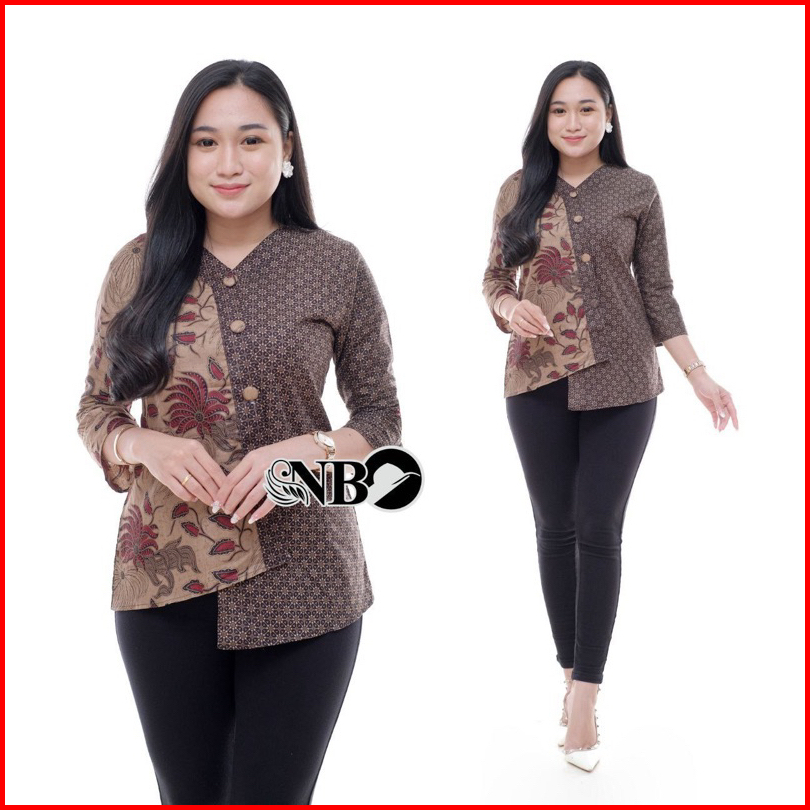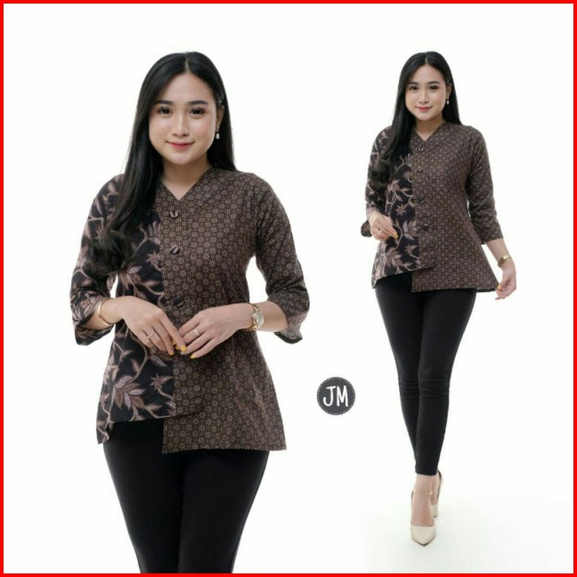 Batik Wanita Asj Sa Hrb026 Kenongo Kemeja Tosca Pendek Kerja Kantor