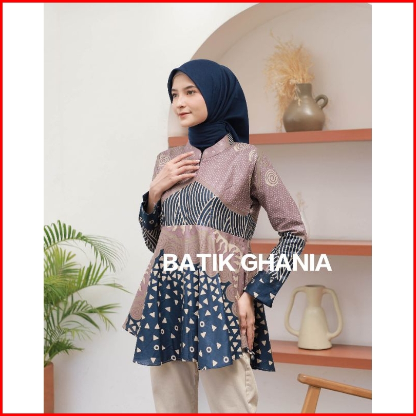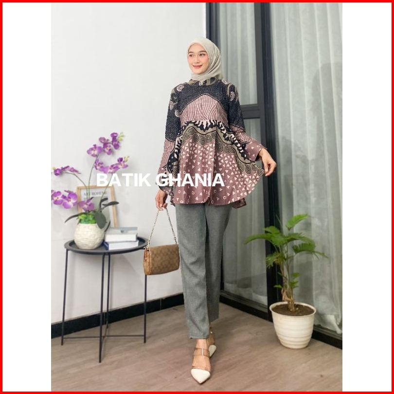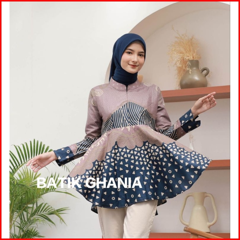 Batik Wanita Modern Batik Couple Blouse Kekinian Lengan Panjang Resleting Depan By Batik Ghania