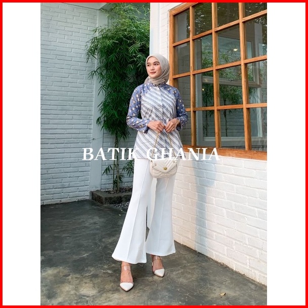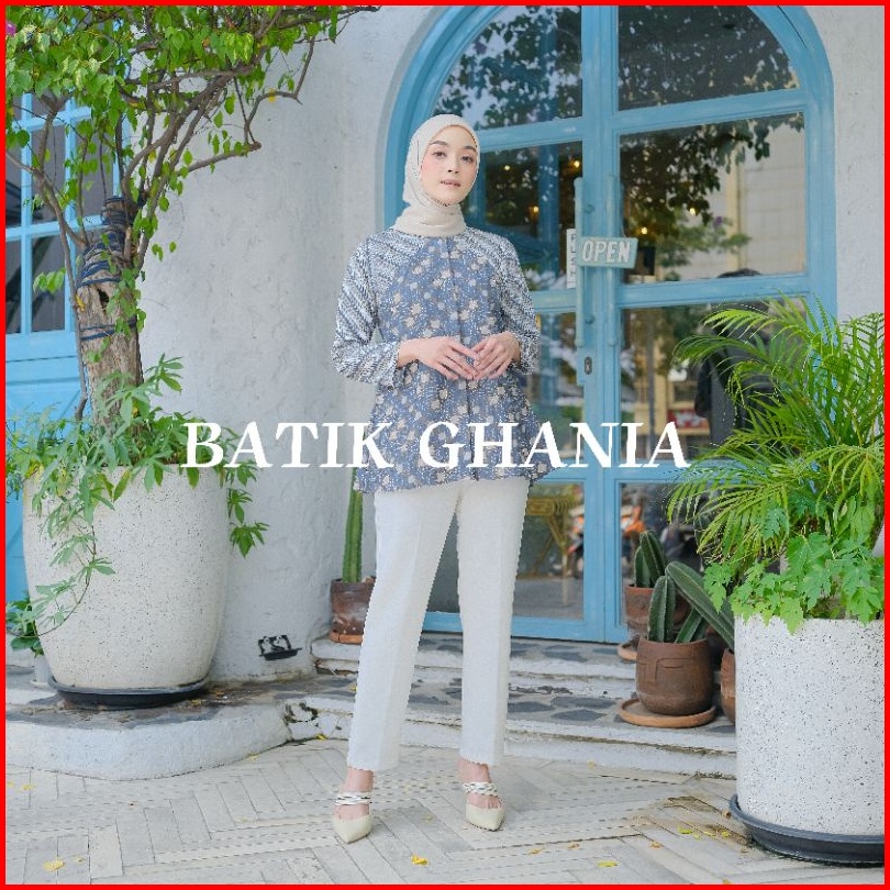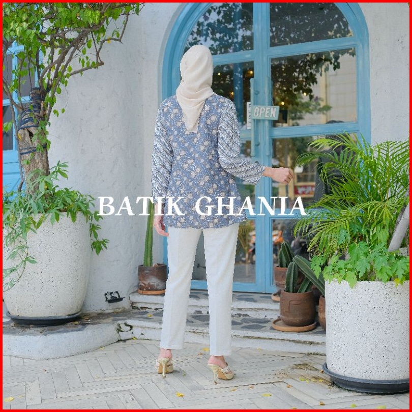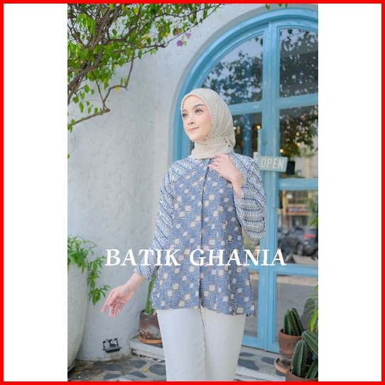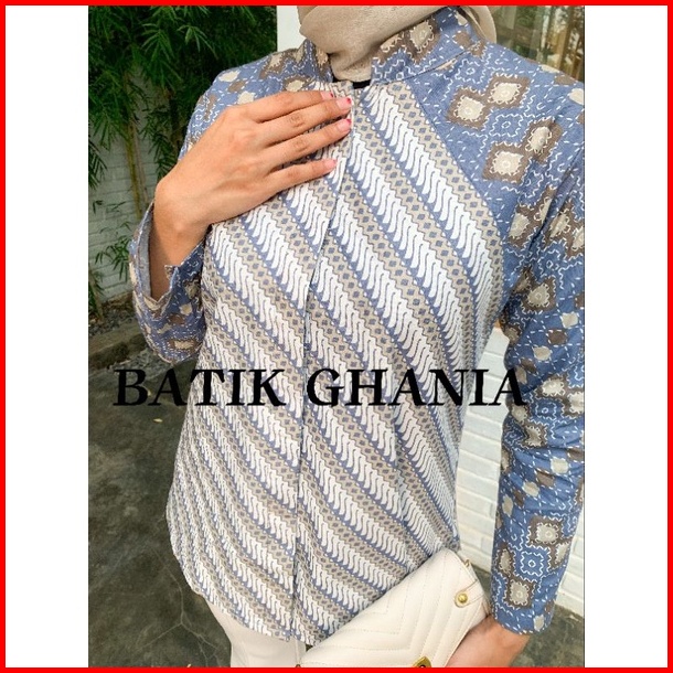 Blouse Batik Atasan Batik Wanita Lengan Panjang Kancing Depan Motif Kotak Senoo