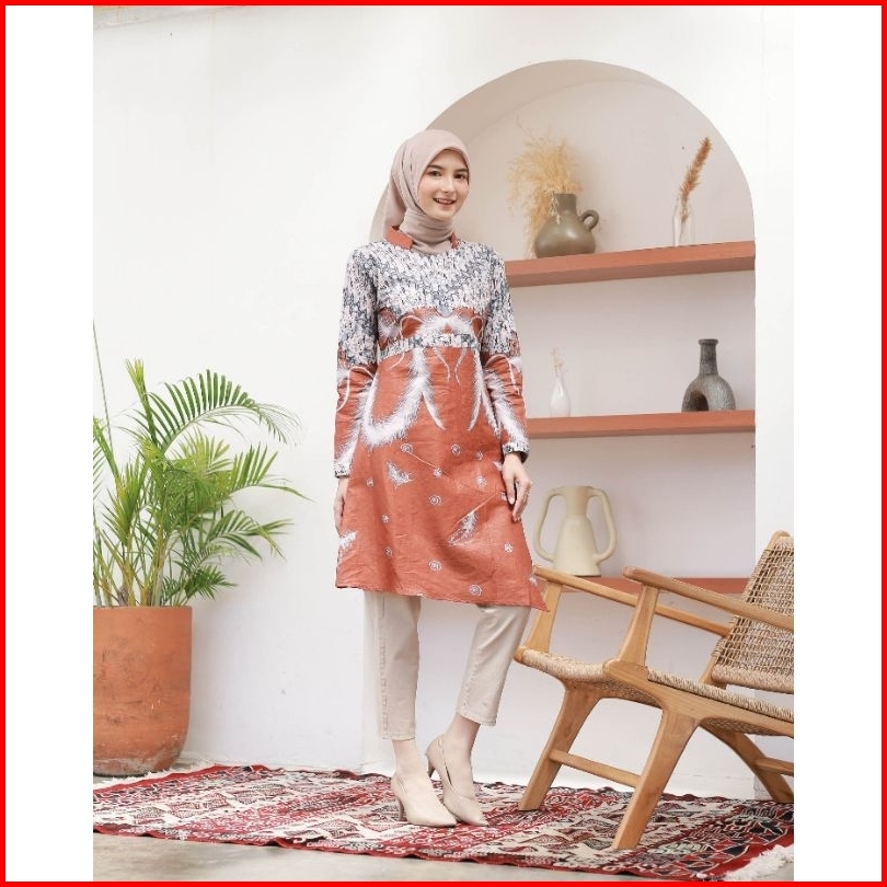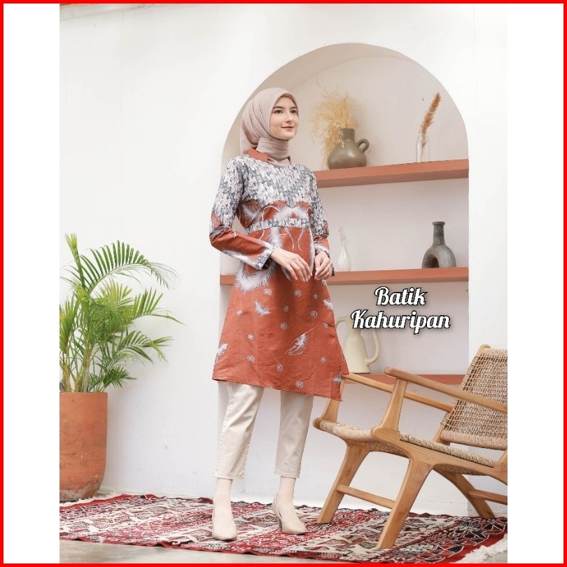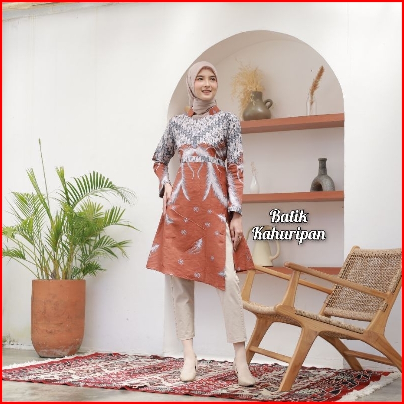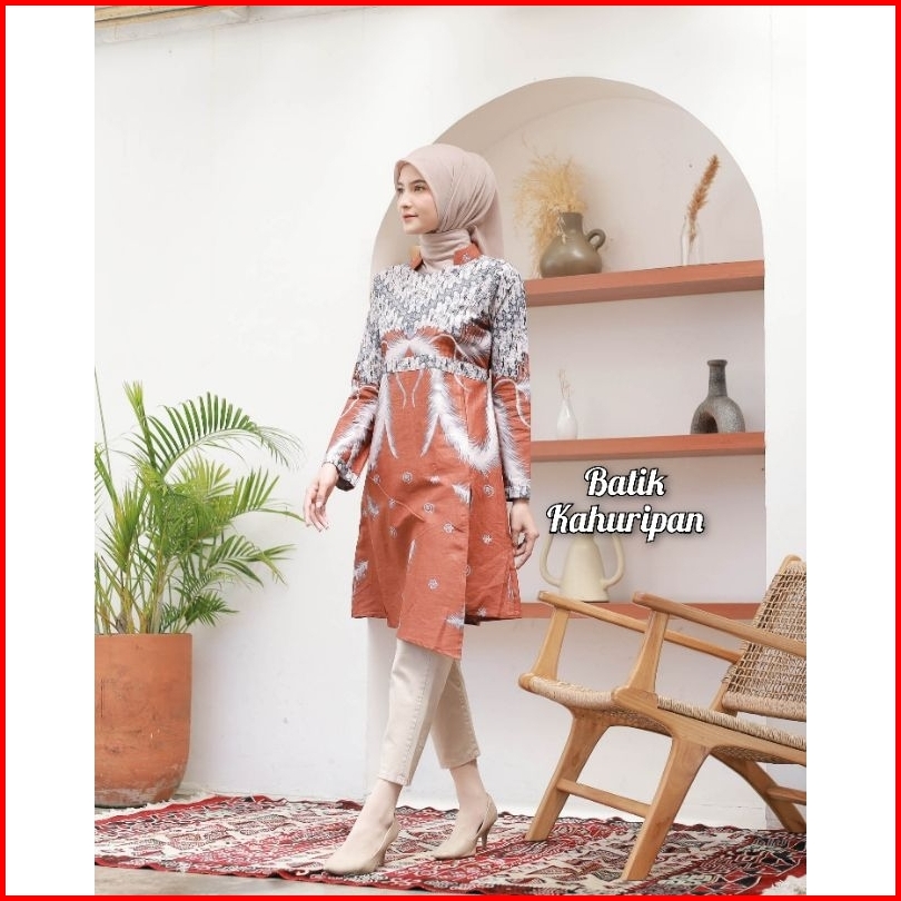 Tunik Batik Wanita Lengan Panjang Tunik Batik Wanita Jumbo Baju Batik Wanita Modern Motif Seno Ayu