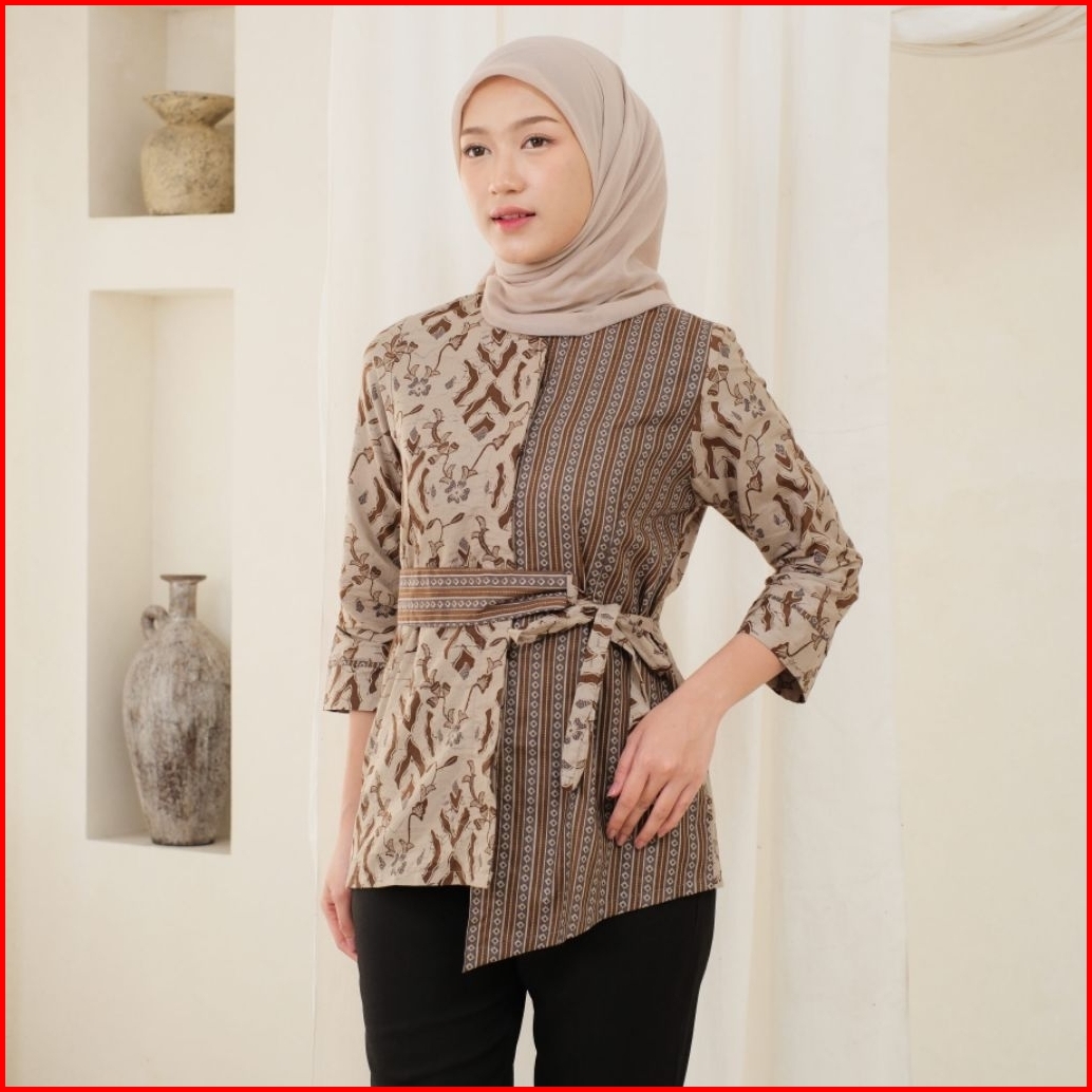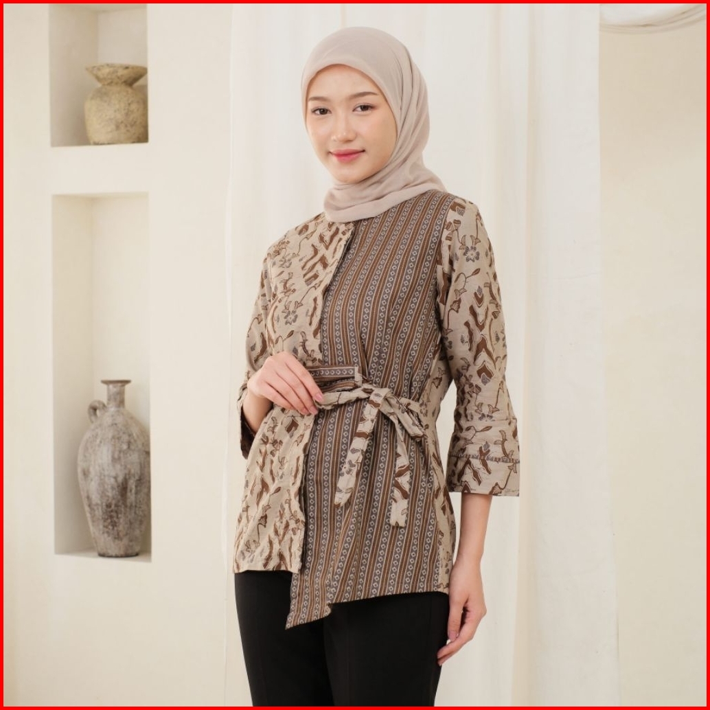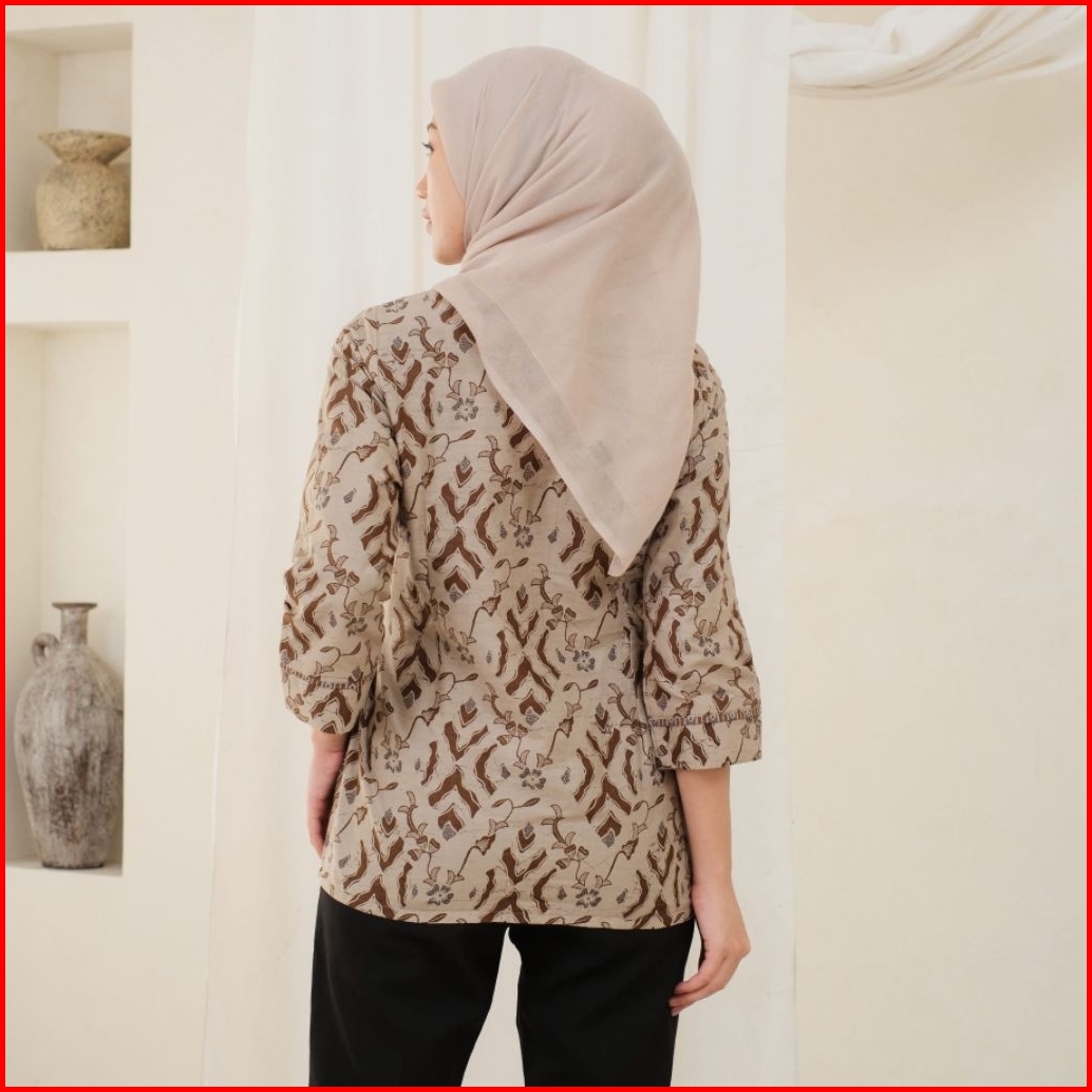 Tey-17 Batik Wanita Asj Sa Hrb026 Kenongo Kemeja Tosca Pendek