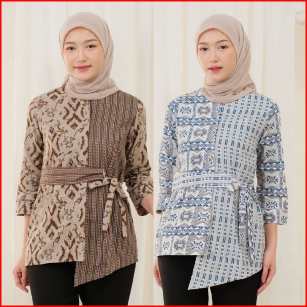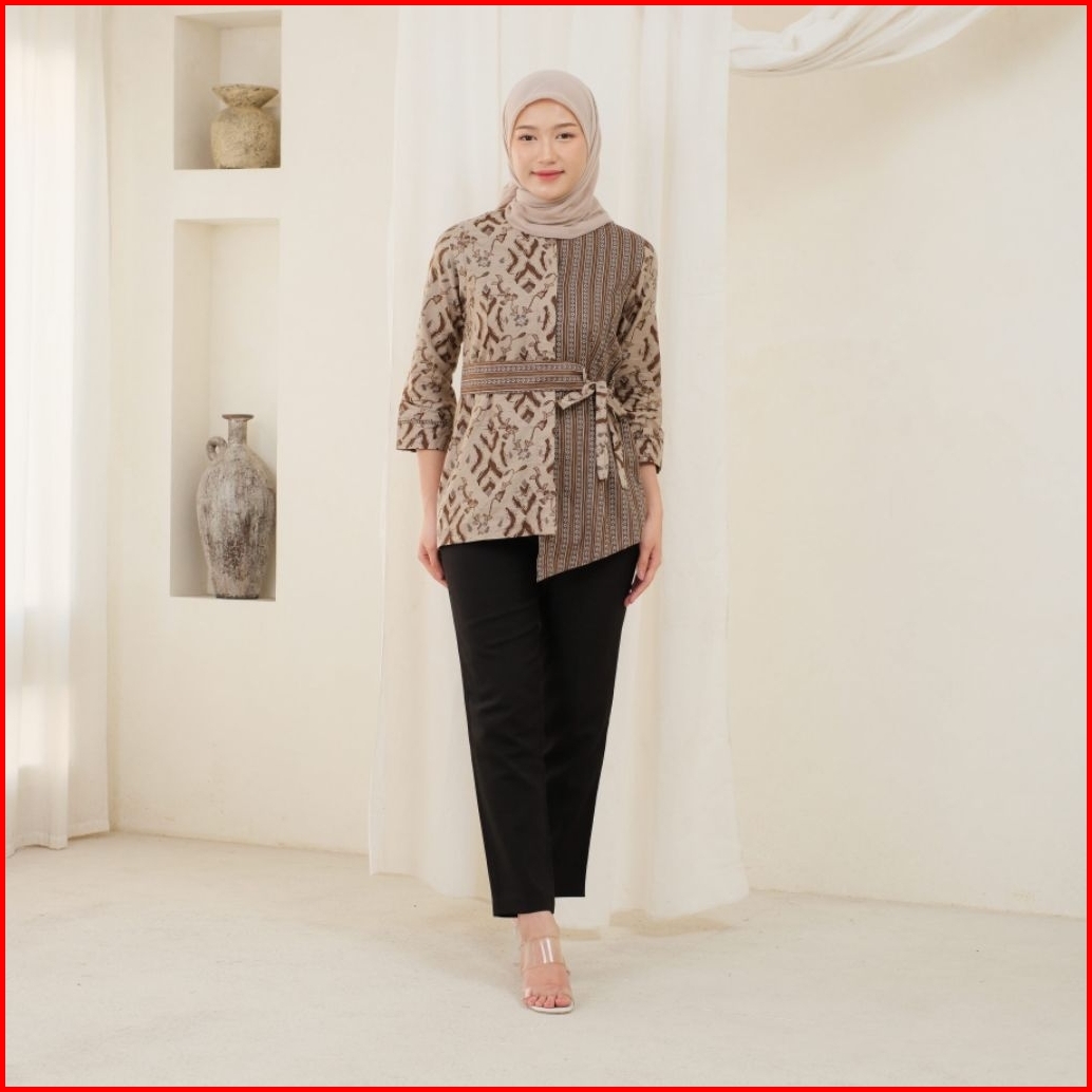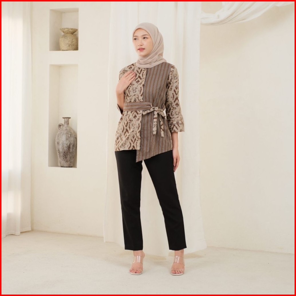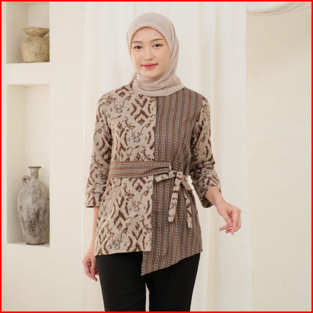 Tey-17 Batik Wanita Asj Sa Hrb026 Kenongo Kemeja Tosca Pendek