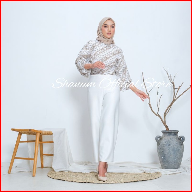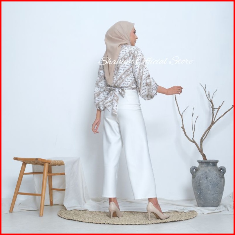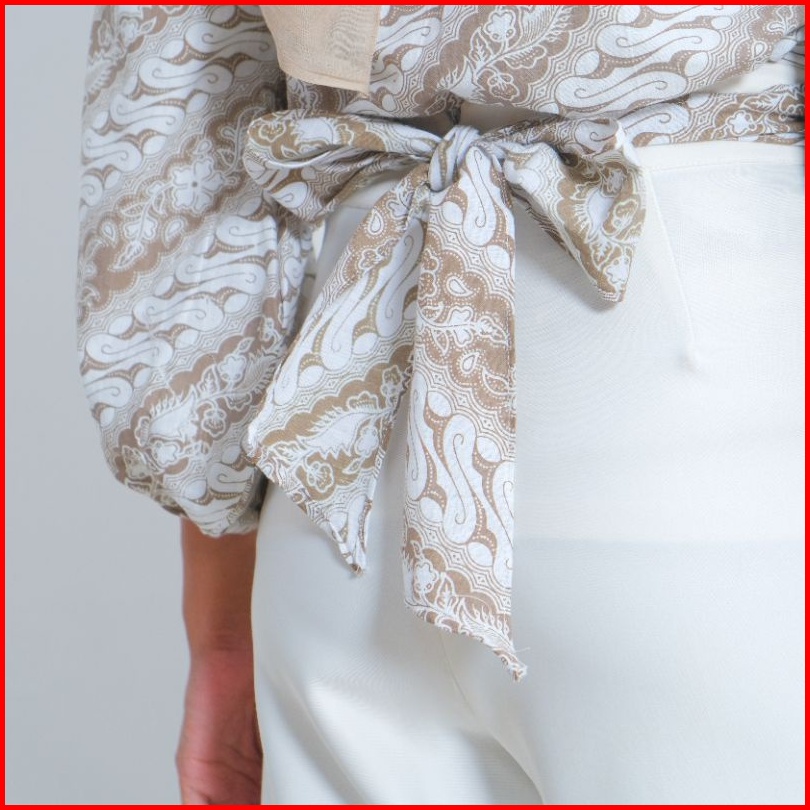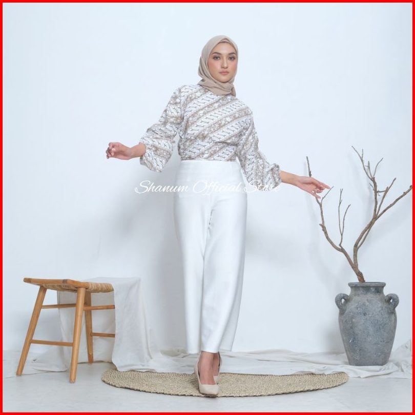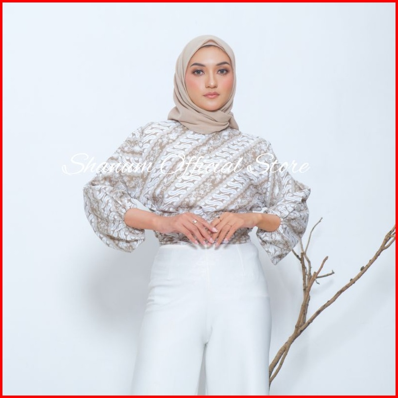 Atasan Blouse Batik Wanita Cople Kerja Lengan Plum Balon Motif Seno Coklat By Shanum