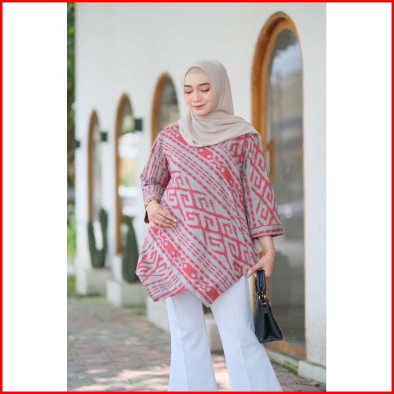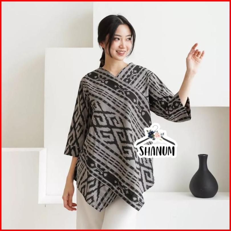 Atasan Wanita Etnic Batik Motif Songket Tenun Atasan Blouse Batik Kerja Modern Wanita Model Silang By Shanum