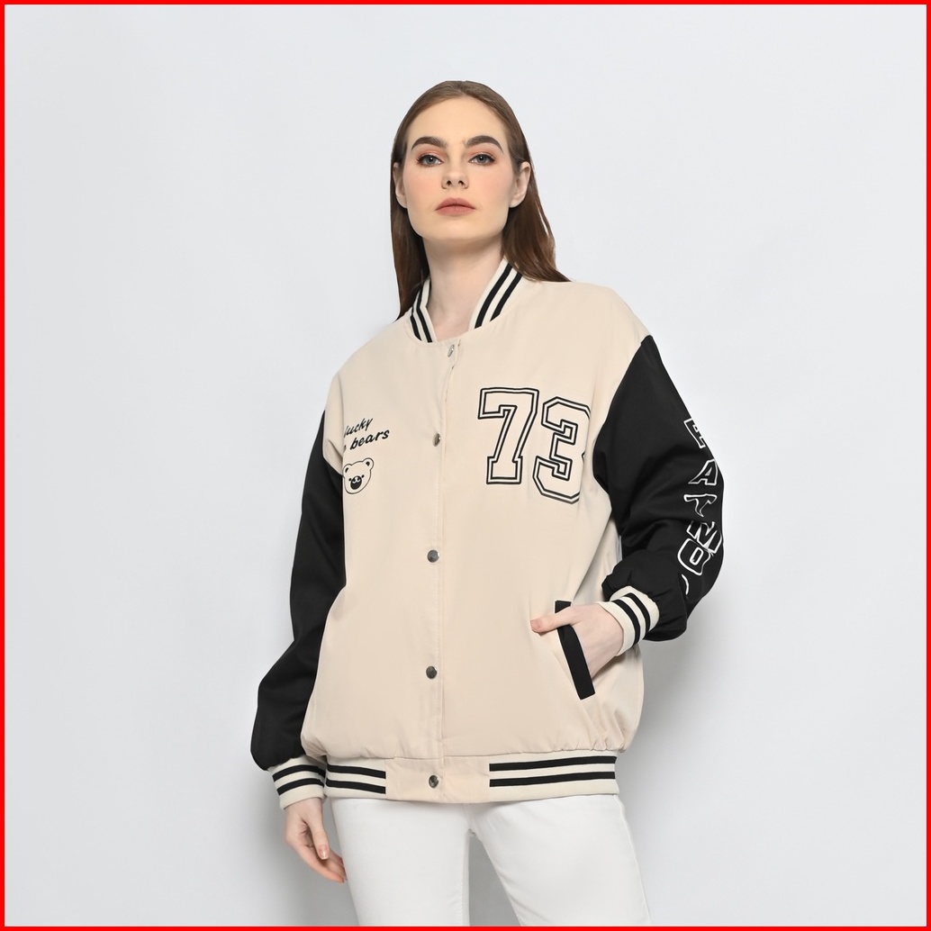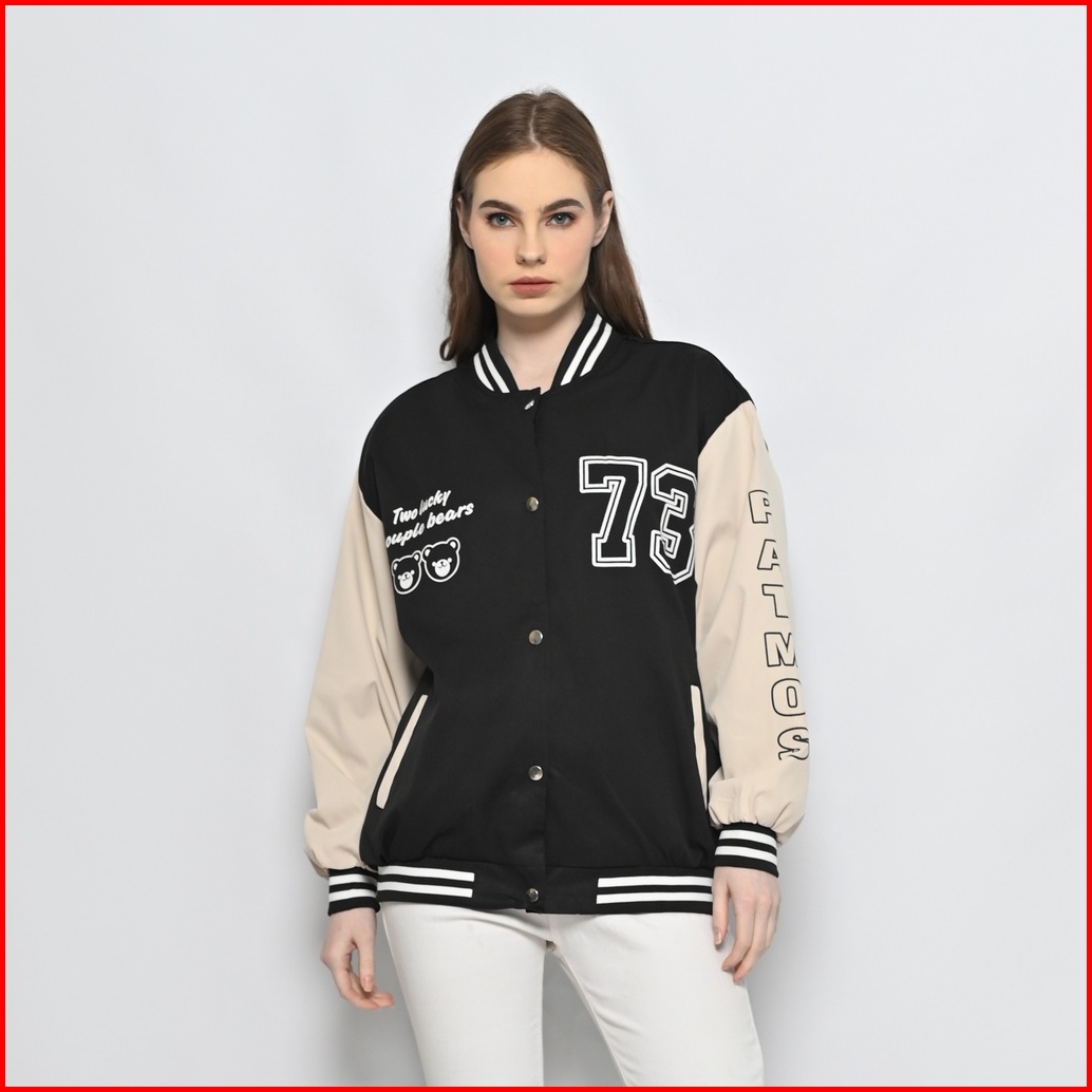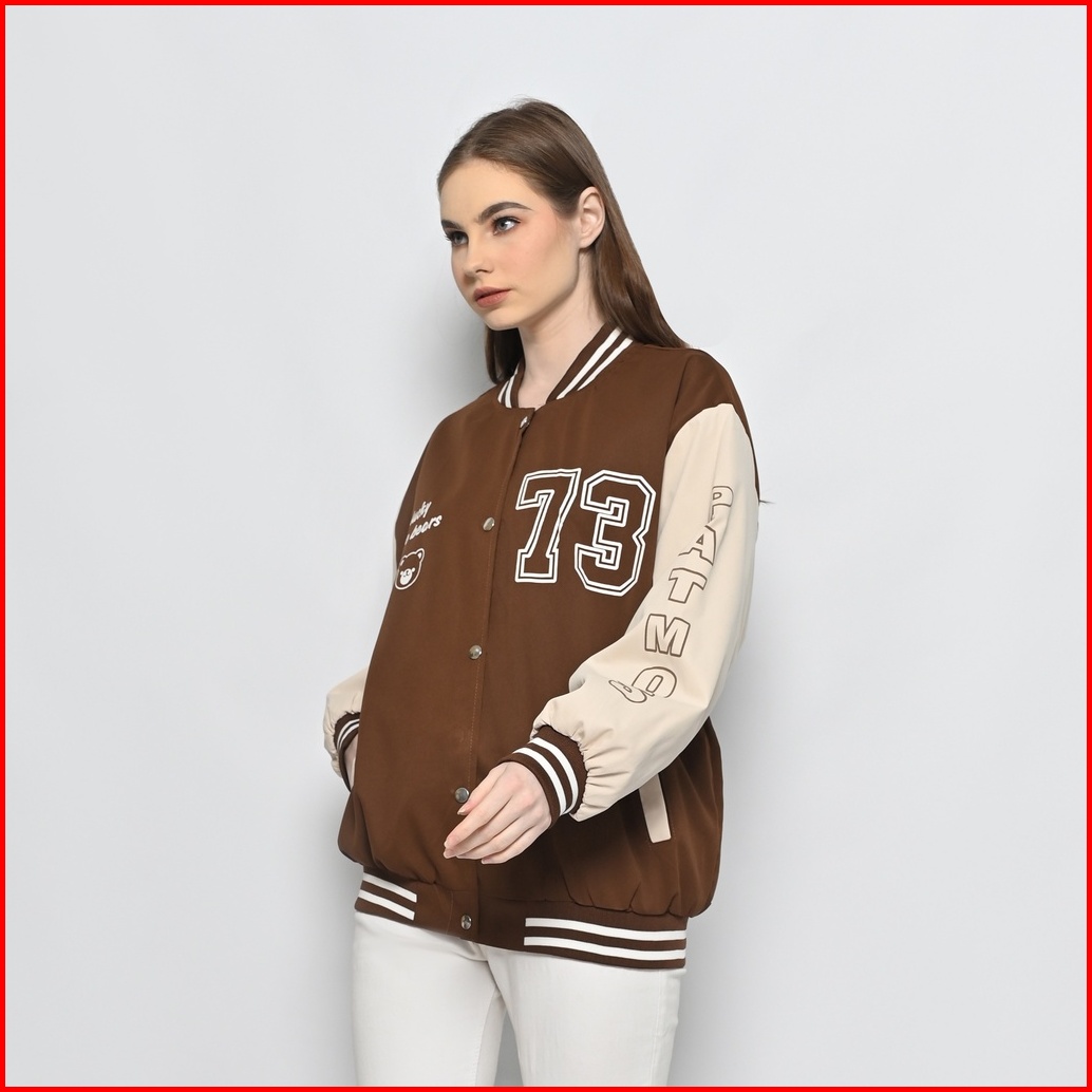 Queentin Jaket Varsity Wanita 915 Bomber Baseball Lengan Panjang
