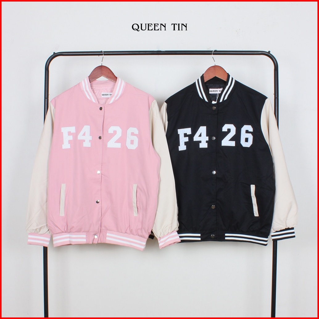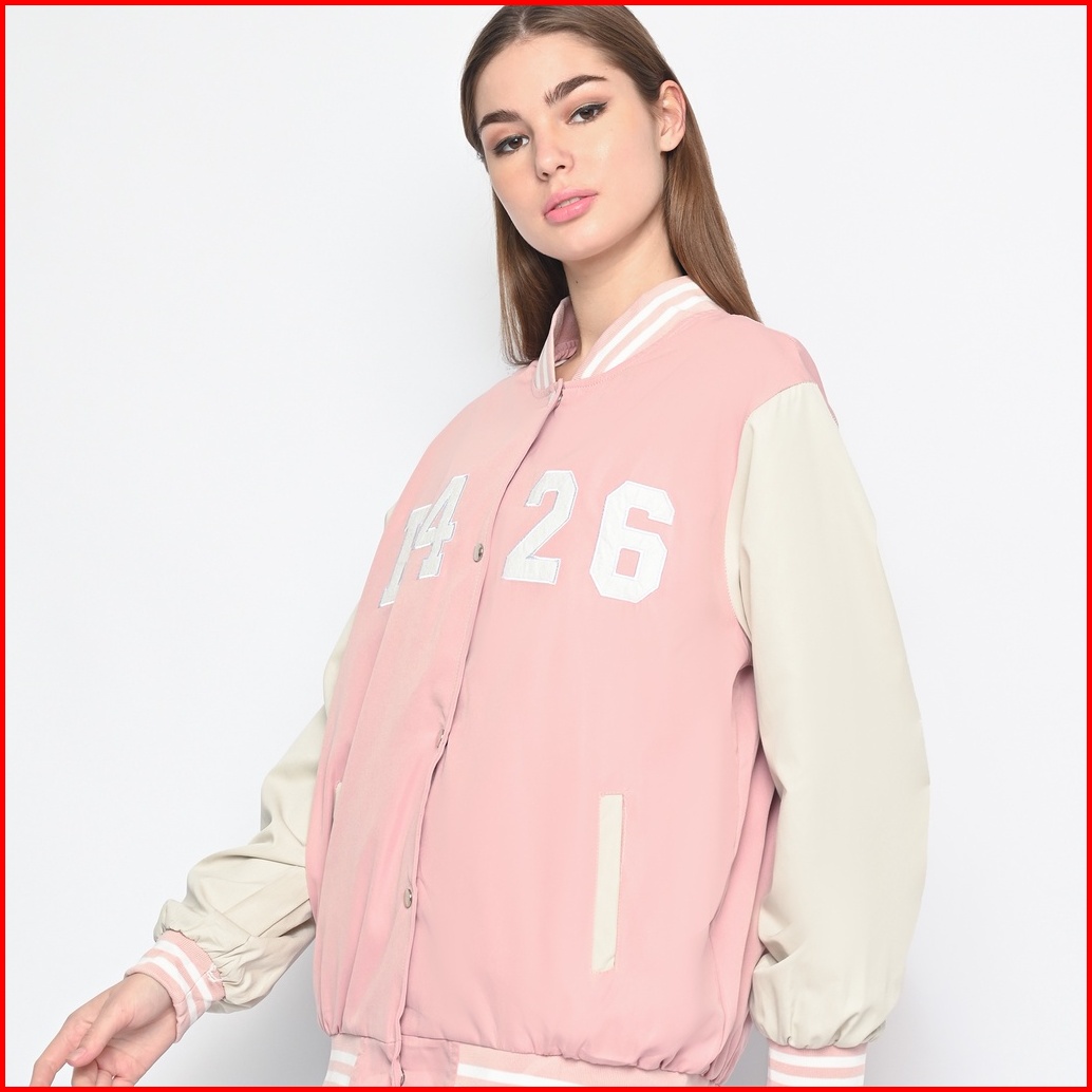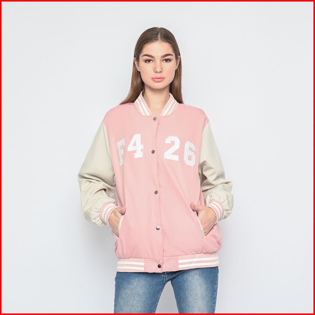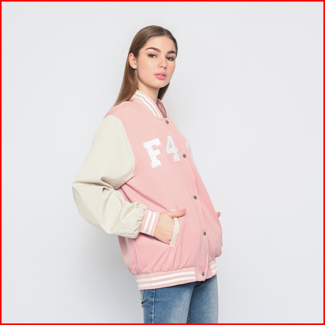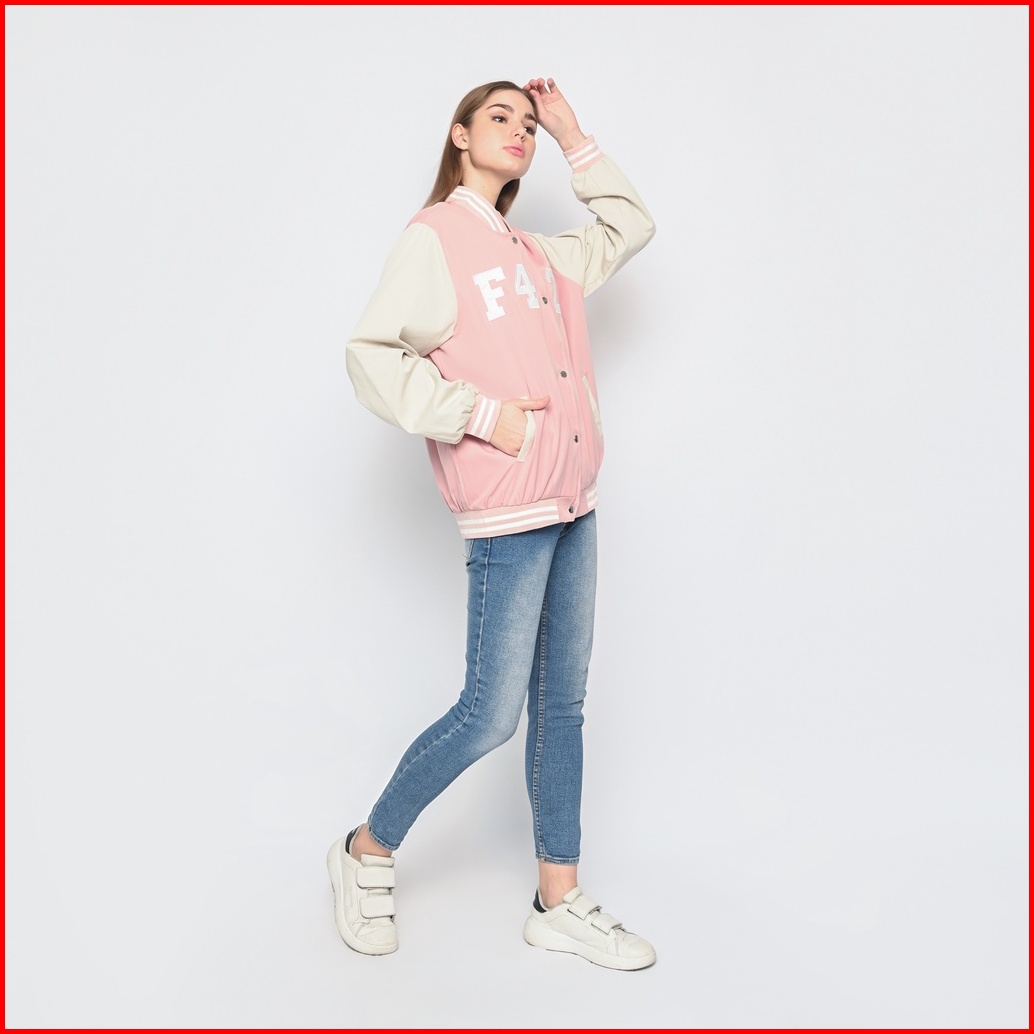Queentin Jaket Varsity Wanita 683 Bomber Baseball Lengan Panjang