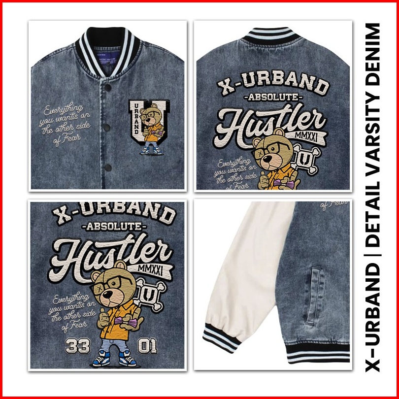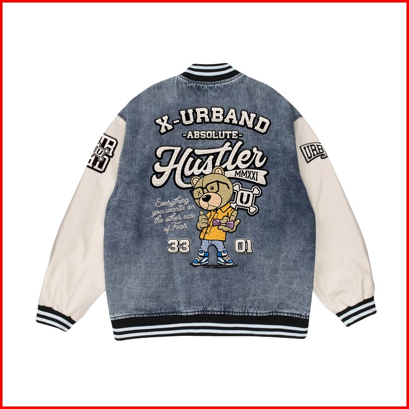 Dhozen Varsity Jacket Denim Bear University A259