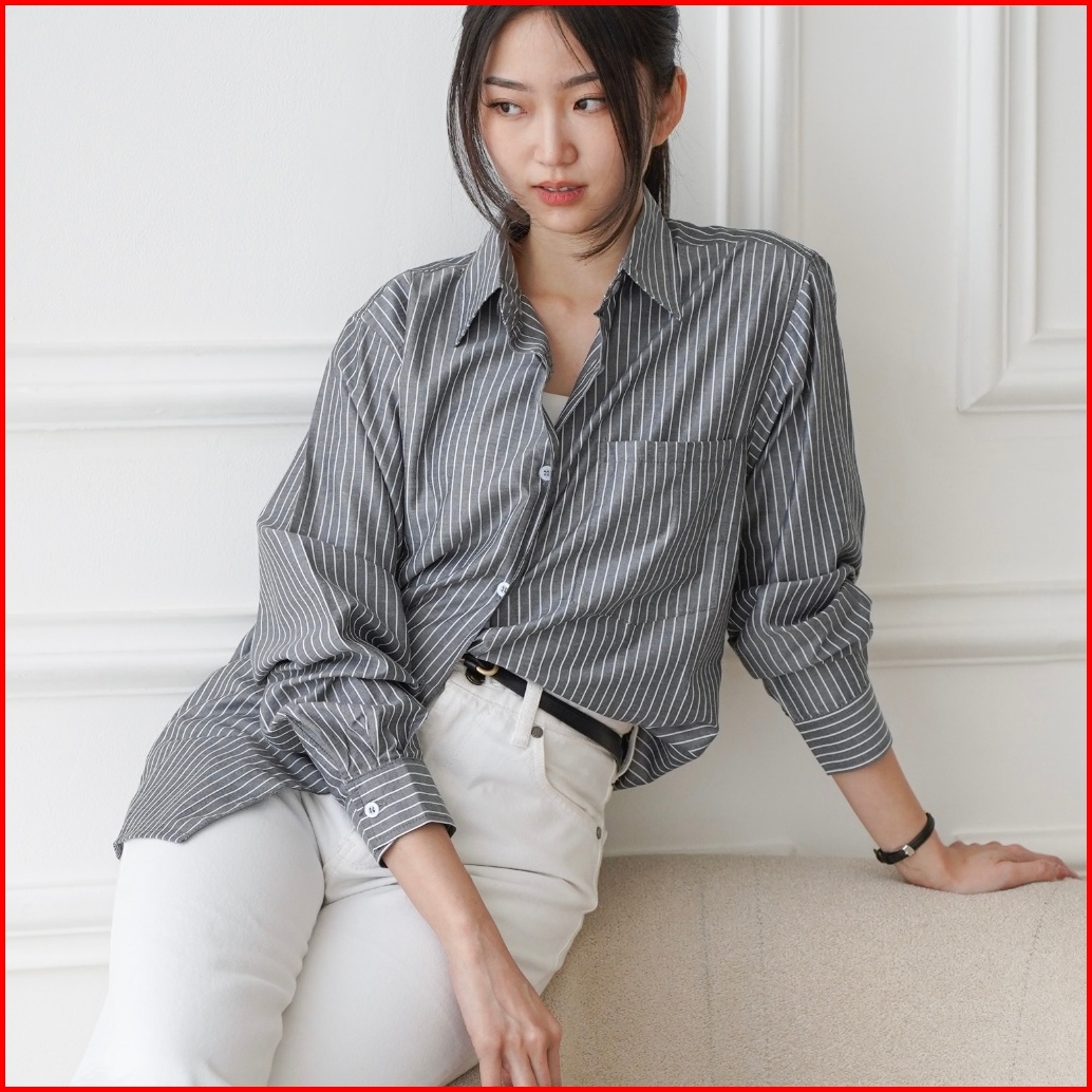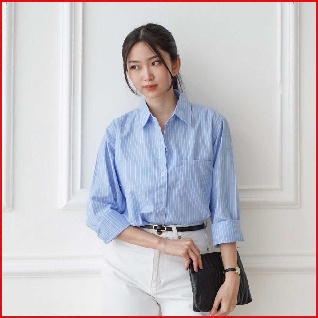 Suzy Shirt Kemeja Salur Wanita Lavvela