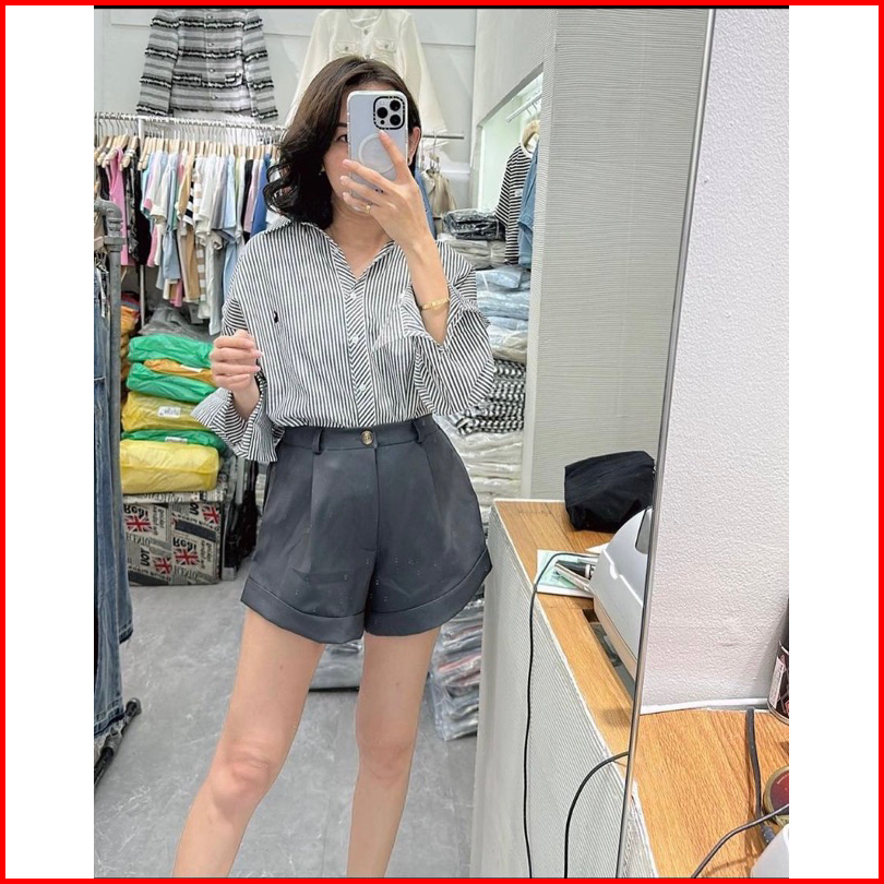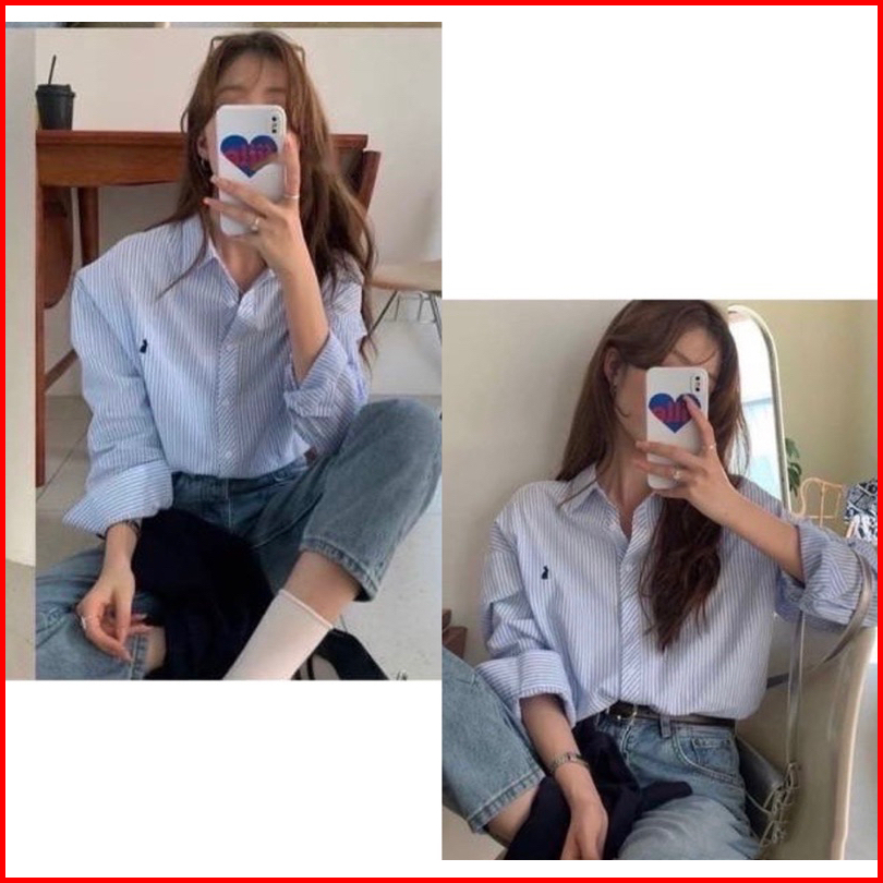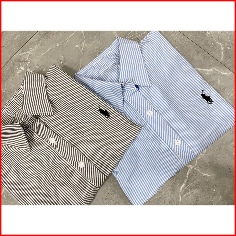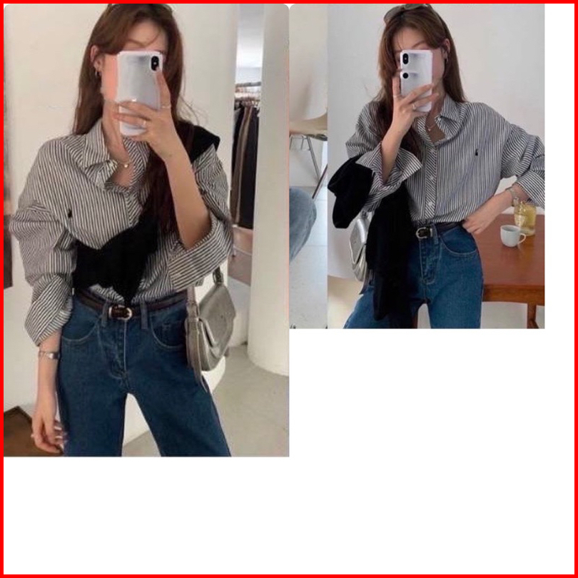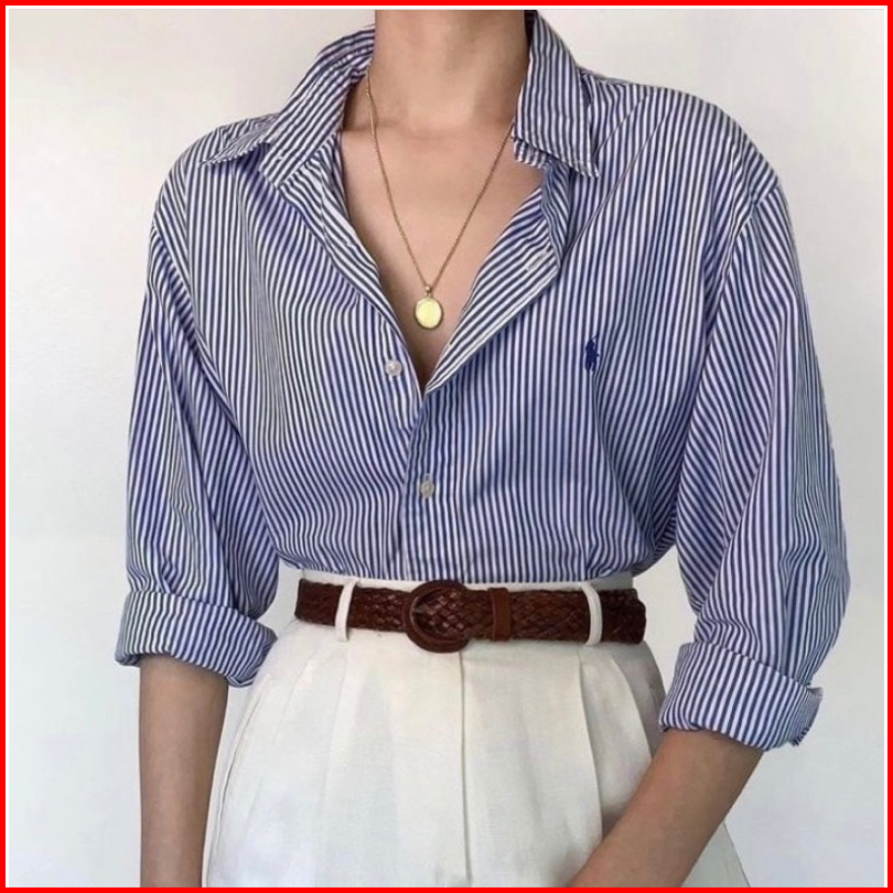 Atasan Kemeja Wanita Polo Strip Elengan Panjang Kemeja Kerja Wanita Polo Shirt Long Sleeve Kemeja Katun Wanita Kemeja St