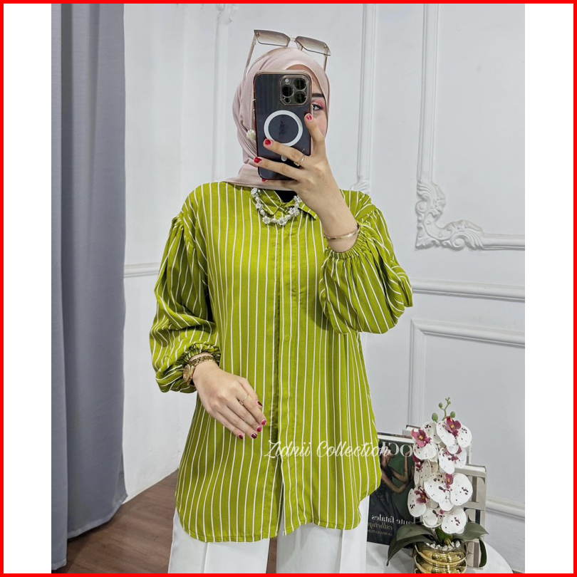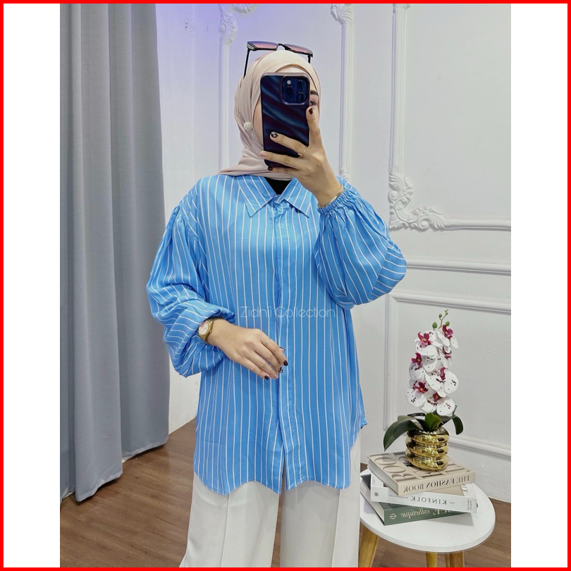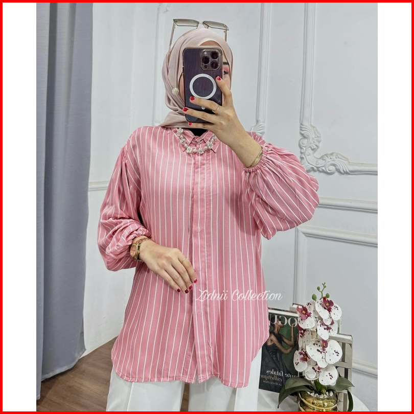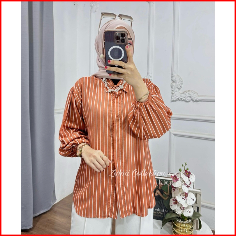 Aurelie Kemeja Salur Rayon Kemeja Stripe Wanita Armani Premium