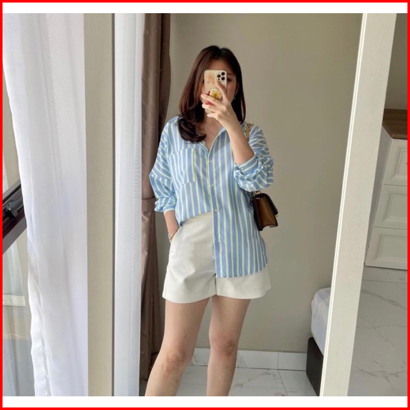 Kemeja Stripe Wanita Kemeja Candy Stripe Kemeja Casual Wanita Kemeja Salur Candy