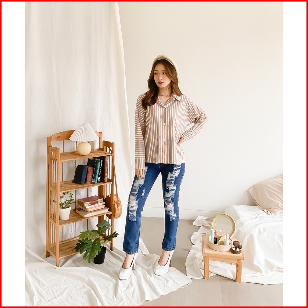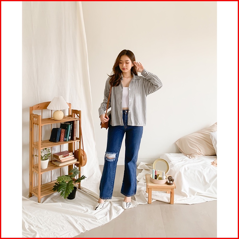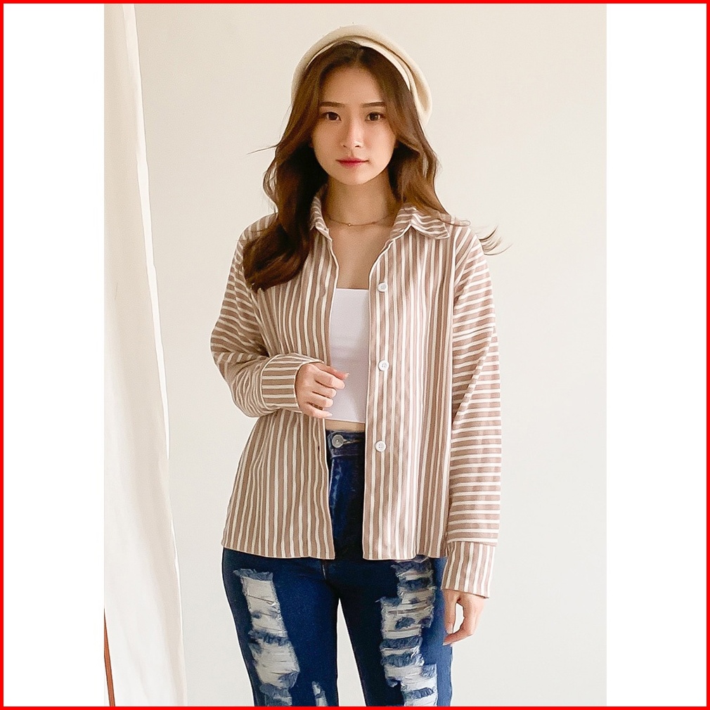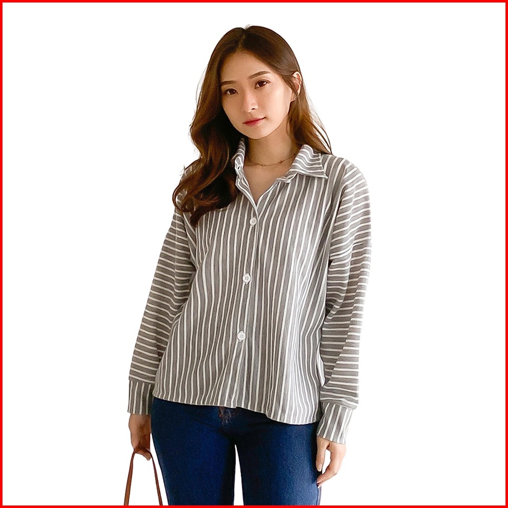 Yoenik Apparel Irra Kemeja Wanita Oversize Tops - Atasan Wanita Stripe Blouse
