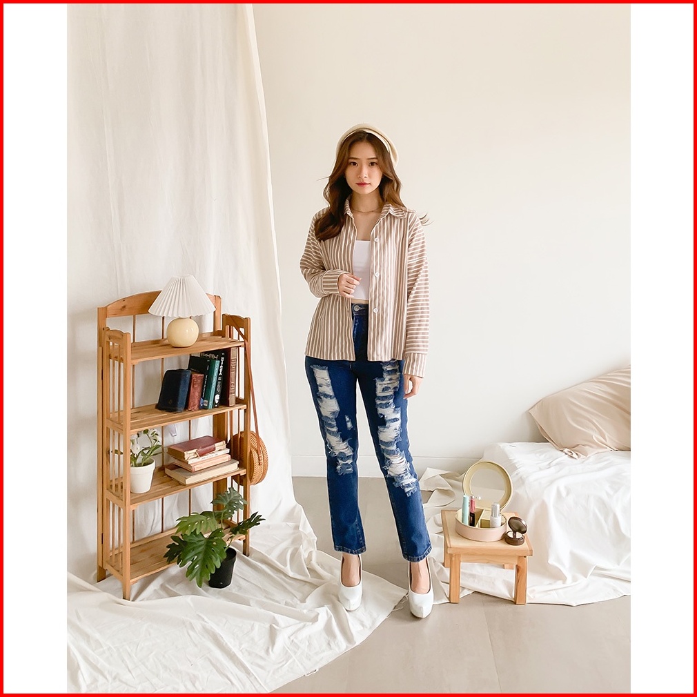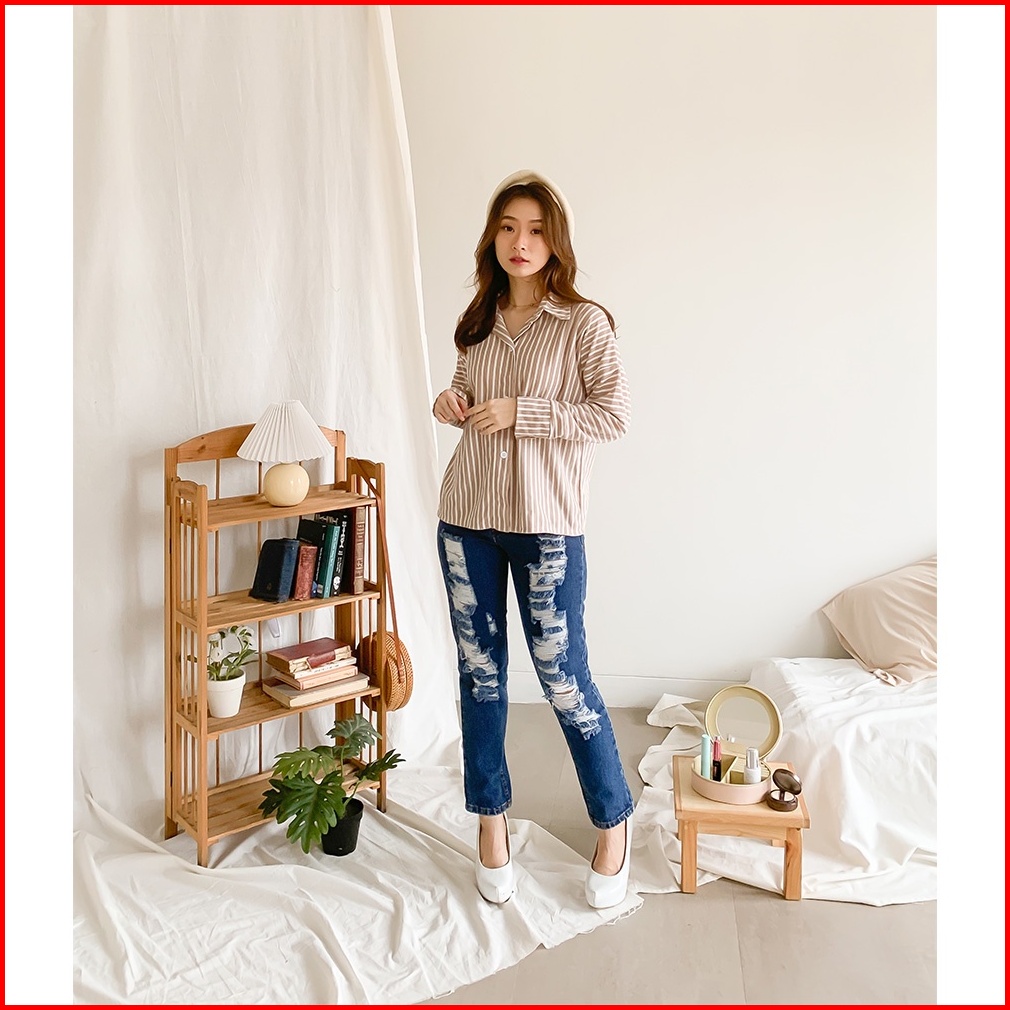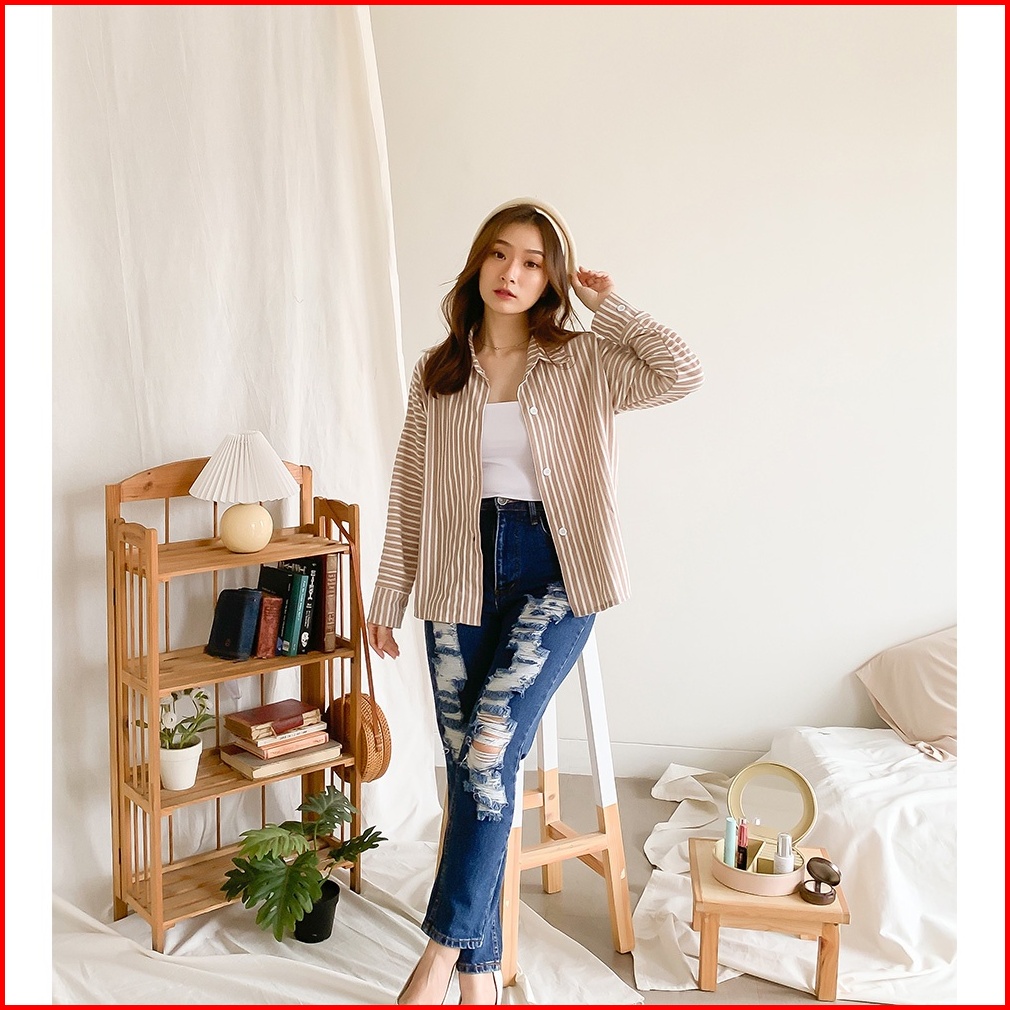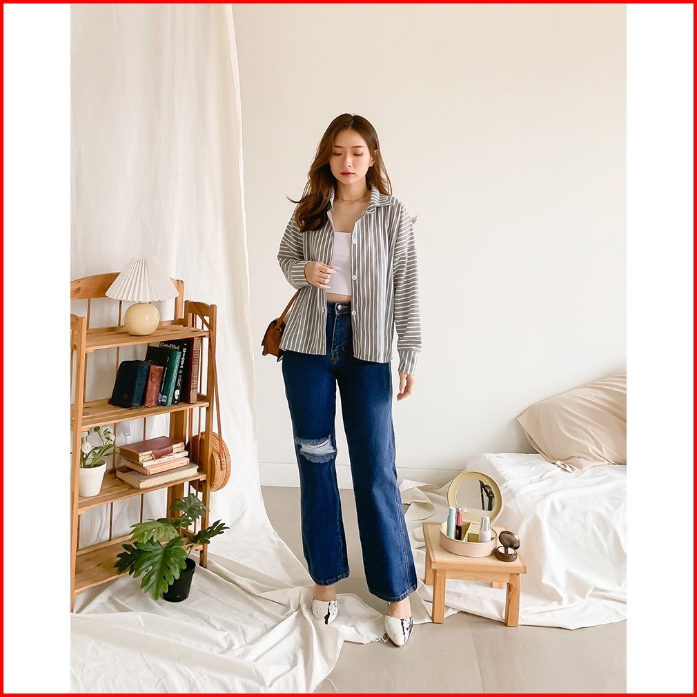 Yoenik Apparel Irra Kemeja Wanita Oversize Tops - Atasan Wanita Stripe Blouse