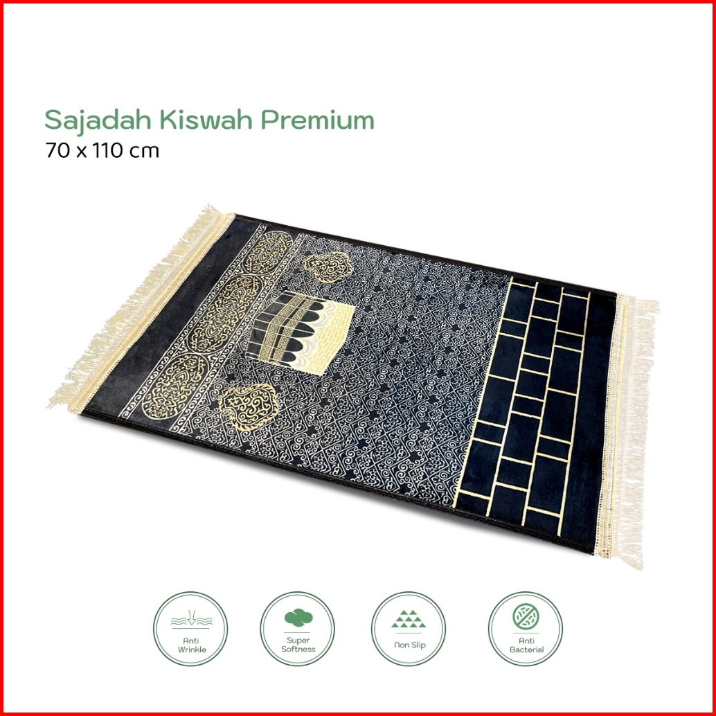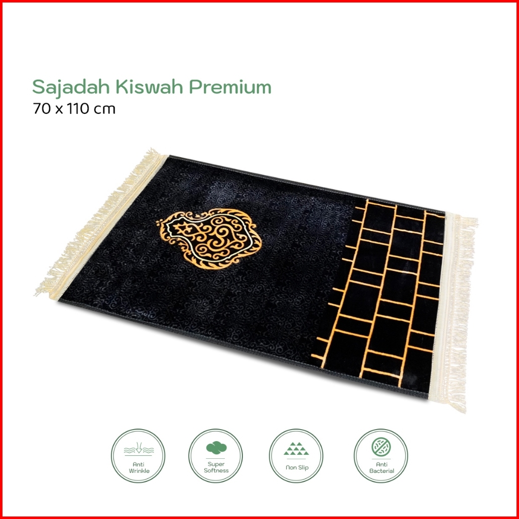 Sajadah Kiswah Turki Rumbai Bludru Tebal Premium 70x110 Sejadah Hitam