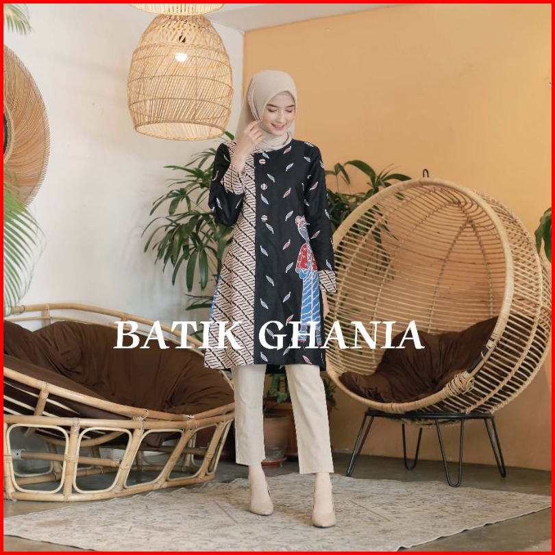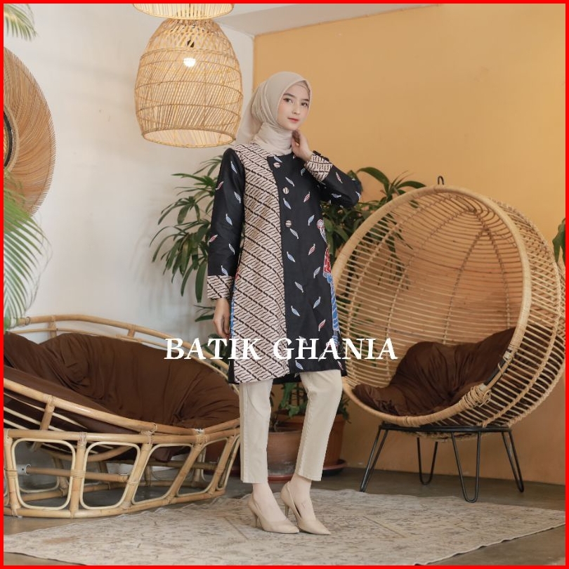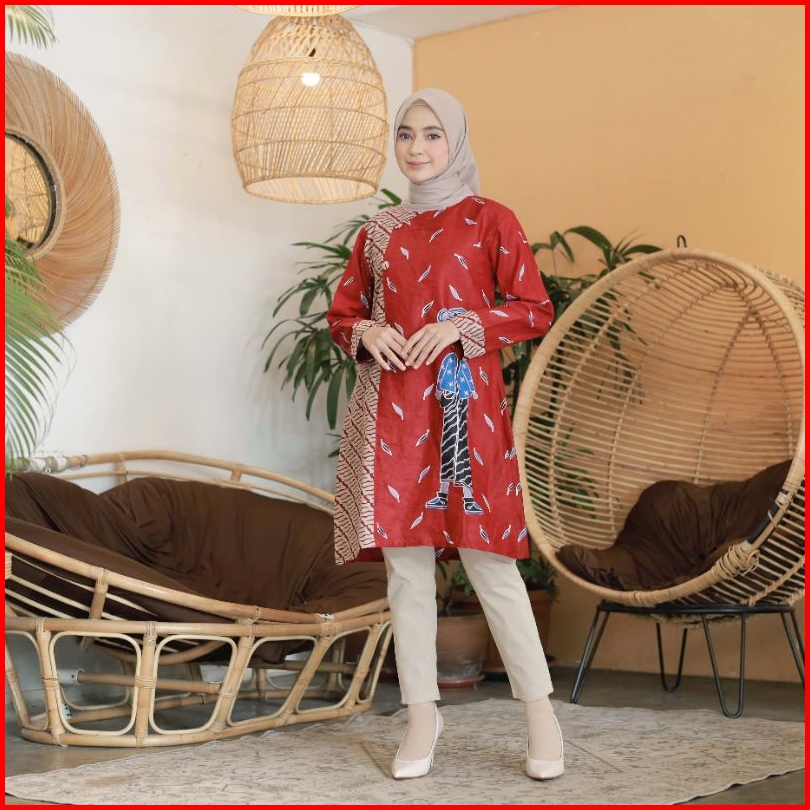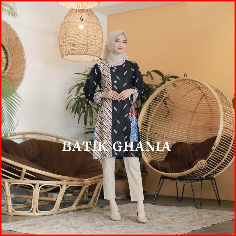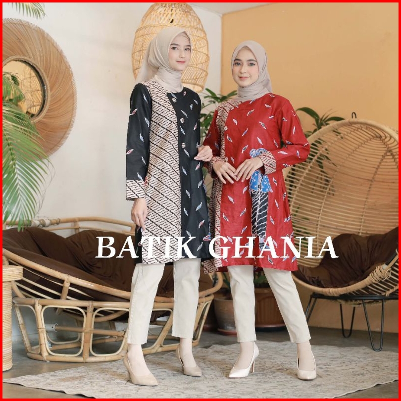 Tunik Batik Wanita Modern Atasan Tunik Terbaru Lengan Panjang Motif Bu Tejo Yg