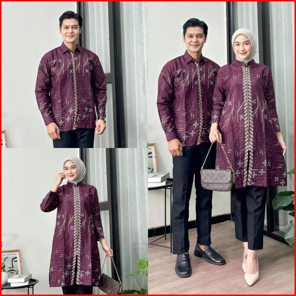 Batik Tunik Couple Modern Set Pakaian Couple Kemeja Batik Pria Panjang Atasan Batik Couple