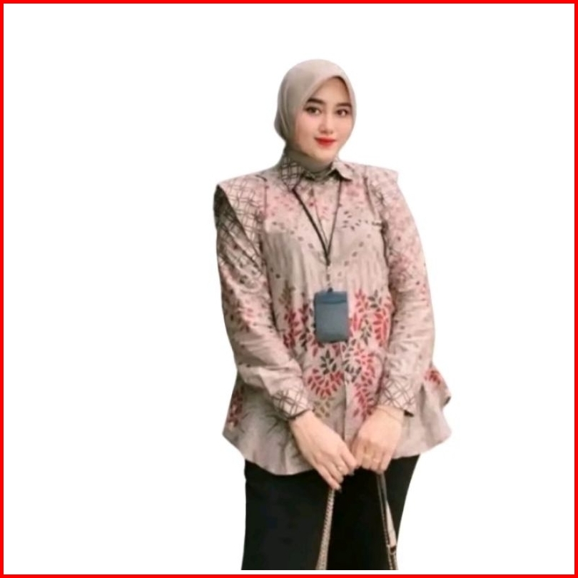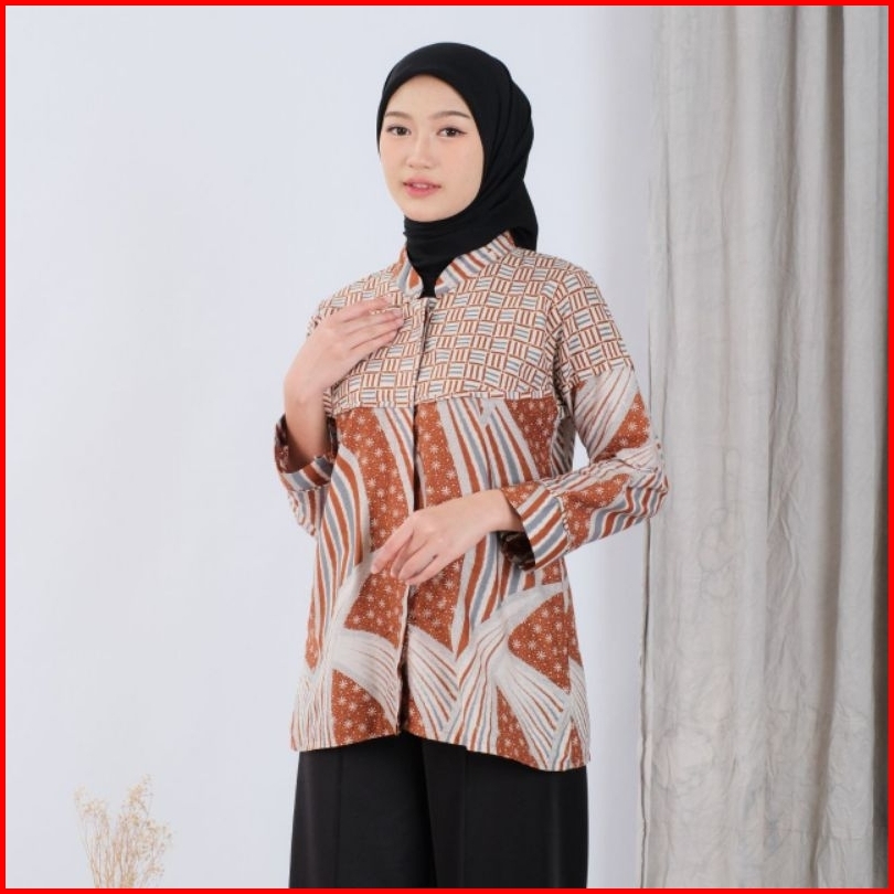 Tey-17 Batik Wanita Asj Sa Hrb026 Kenongo Kemeja Tosca Pendek