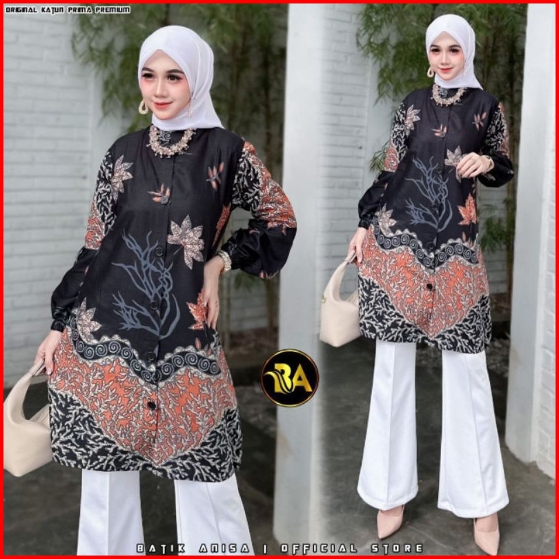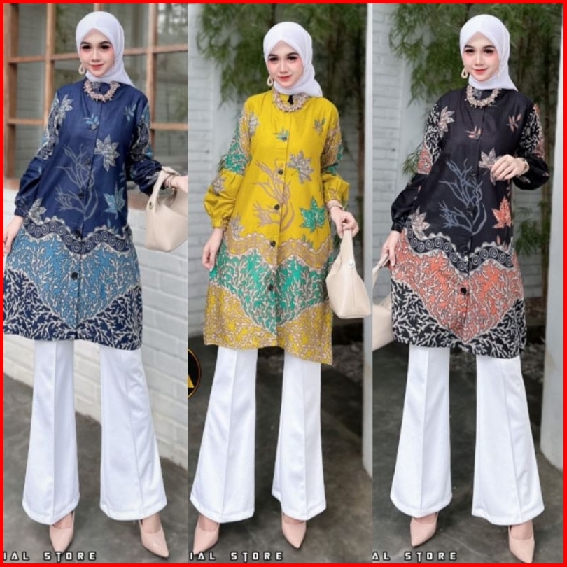 M-l-xl-xxl Batik Tunik Wanita Asj Sa Hrb026 Kenongo Pekalongan Sogan Tulis