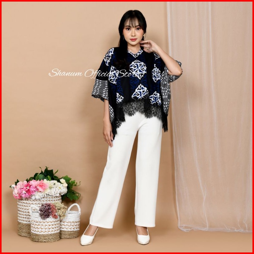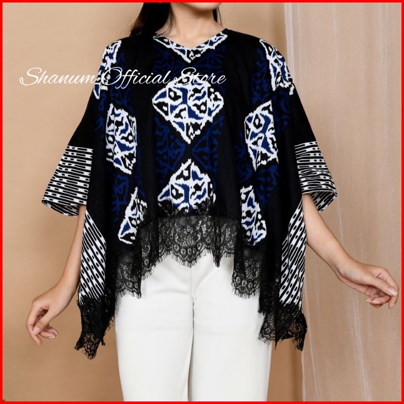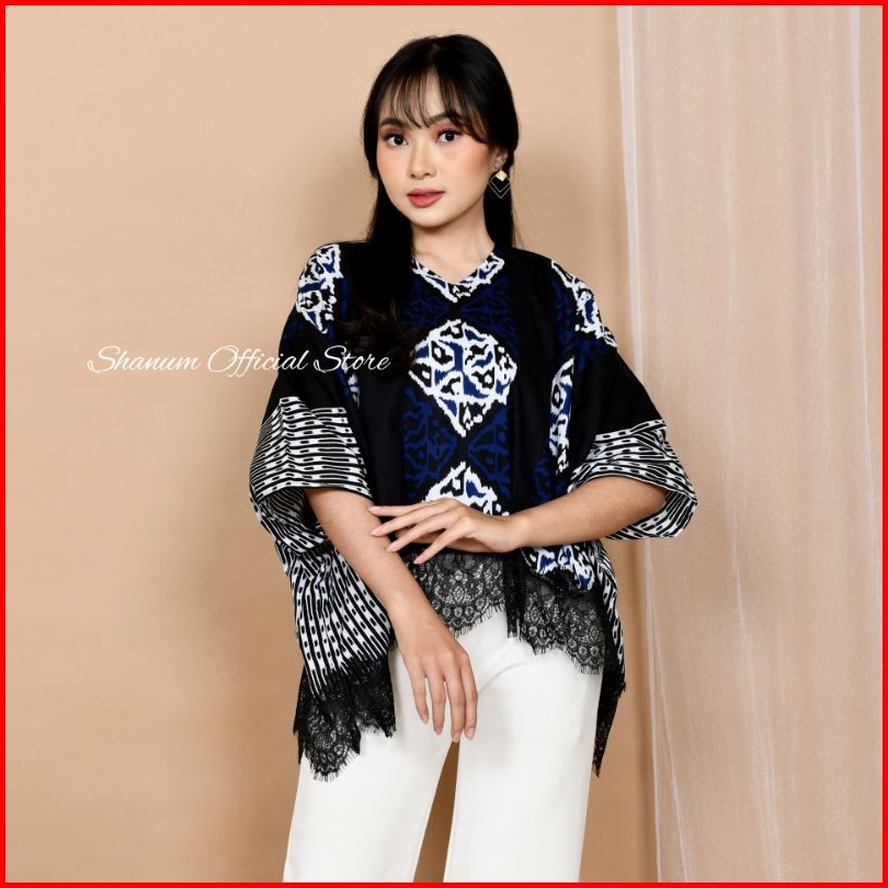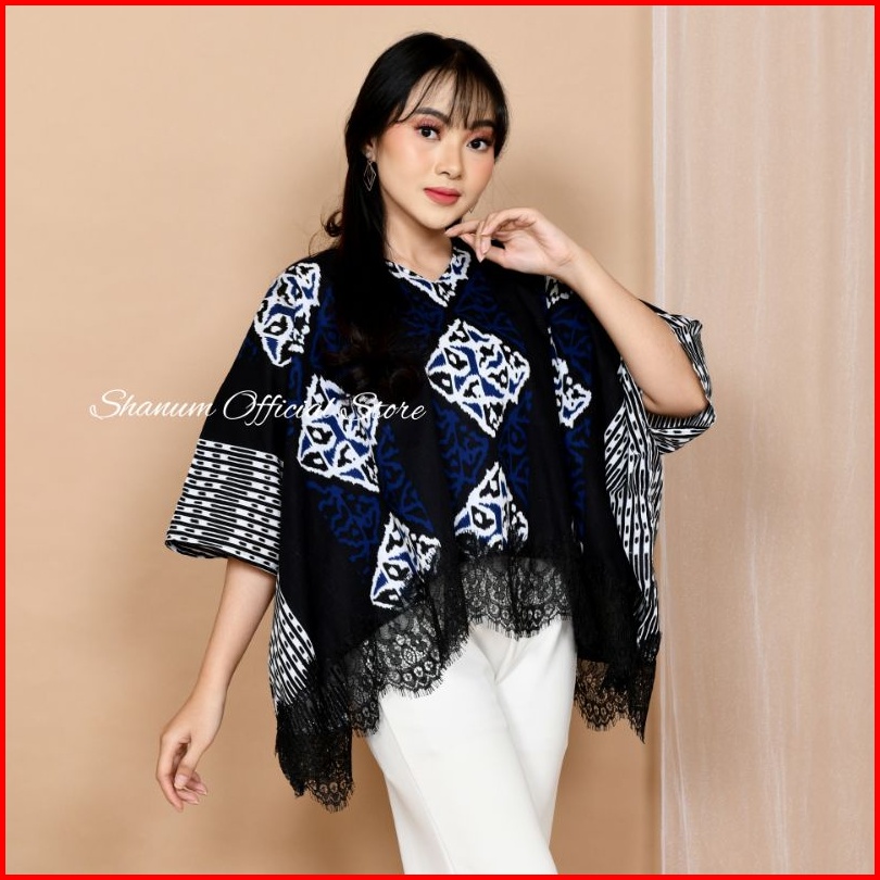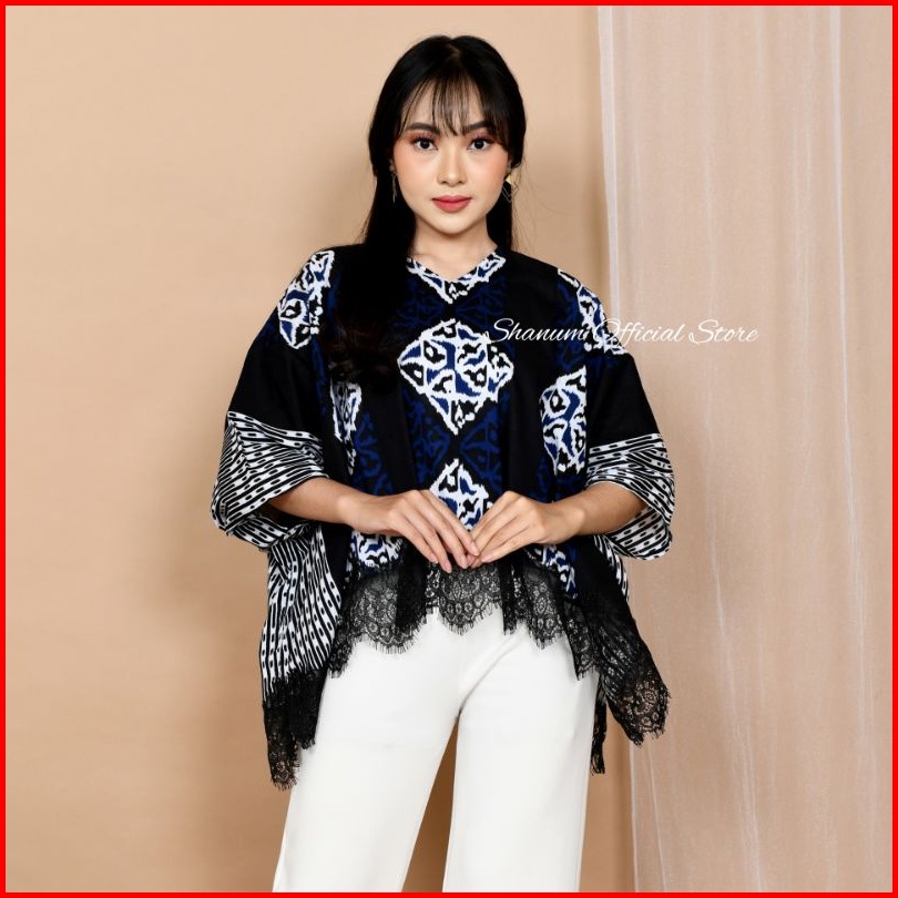 Blouse Batik Batwing Lace Blouse Oversize Motif Songket Tawur Biru Blouse Batik Kondangan Kerja Kuliah