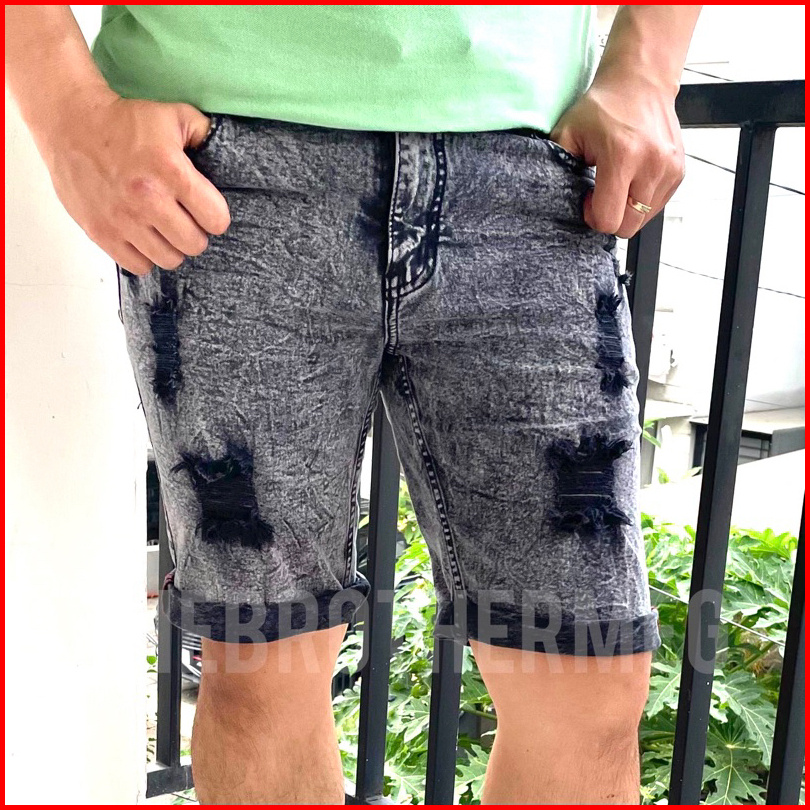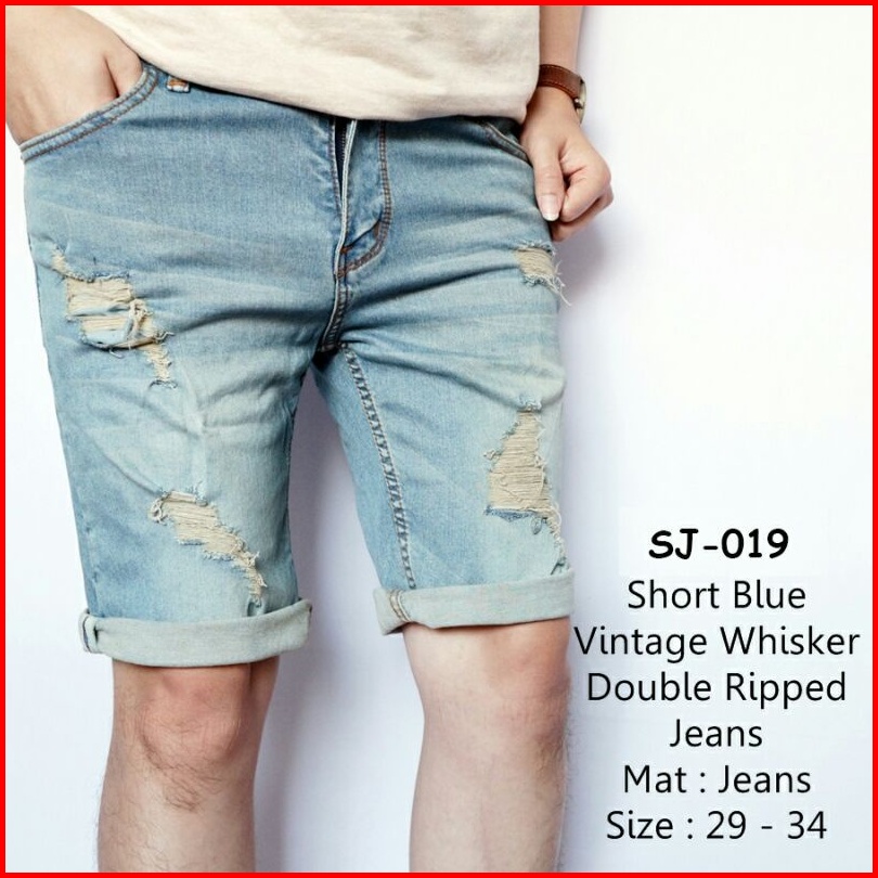 Celana Jeans Pendek Pria-short Jeans Cowok-celana Pendek Jeans Sobek Murah-celana Pendek Pria Sj029