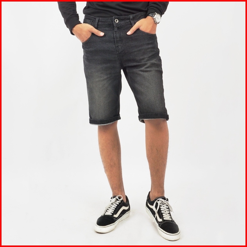 Best Seller Celana Jeans Pendek Pria Morgan Black Limited Block