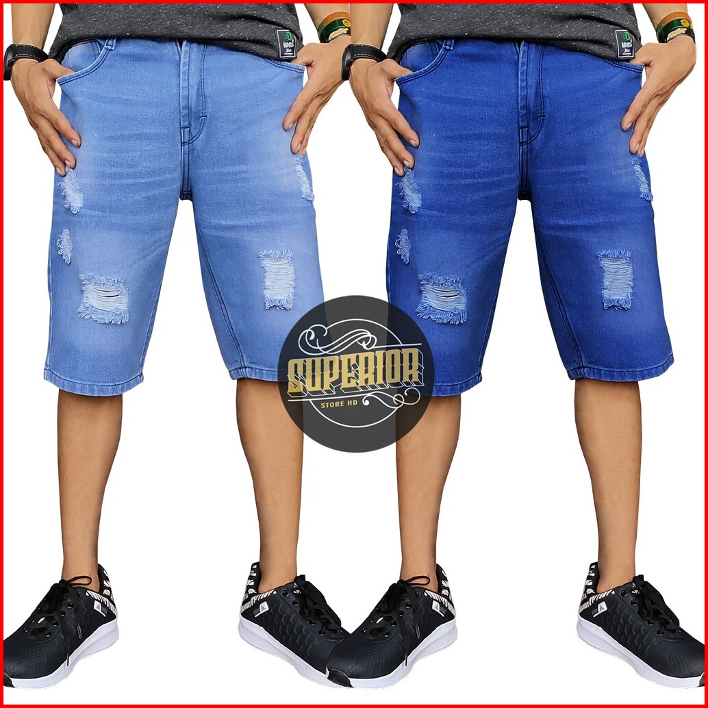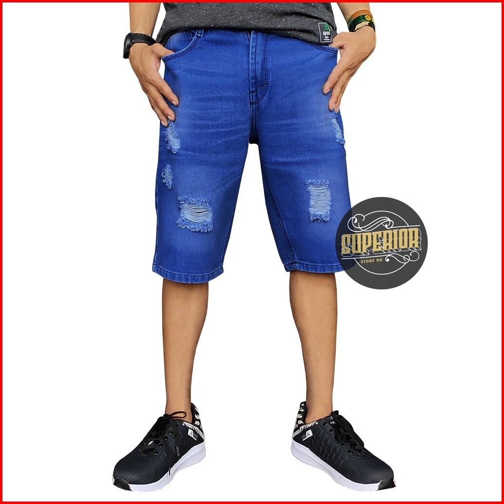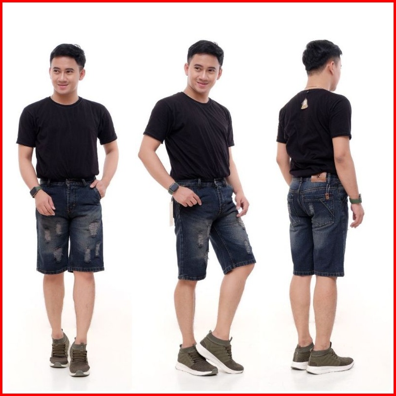 Celana Pendek Jeans Model Sobek Ripped Pria Size 27 - 38