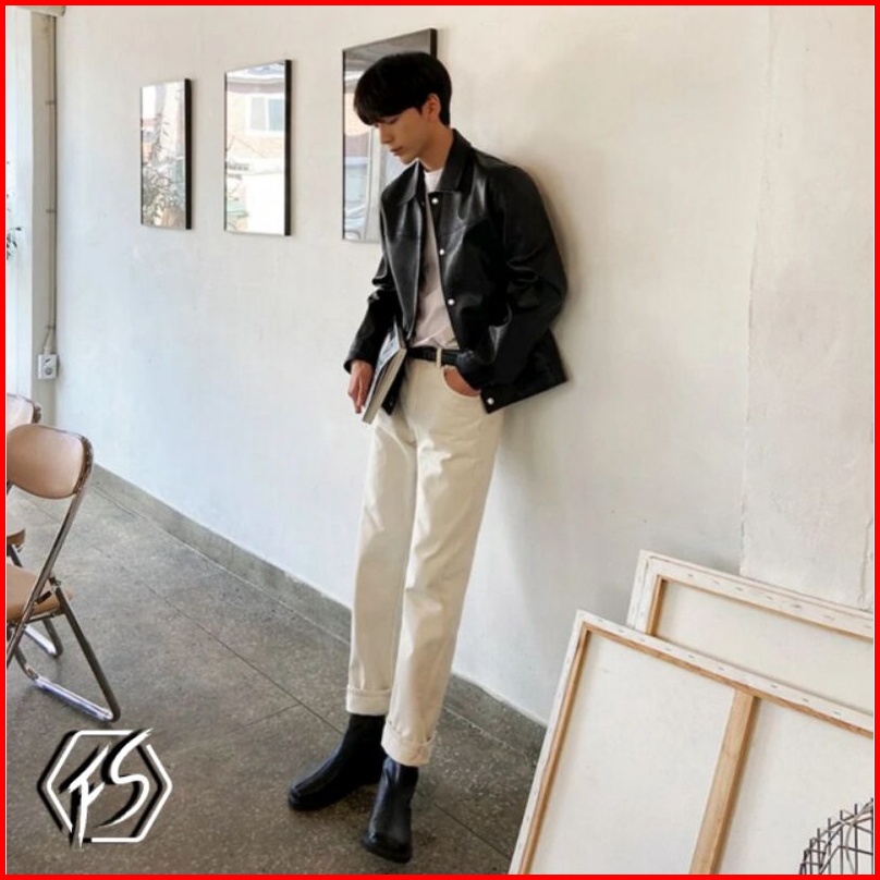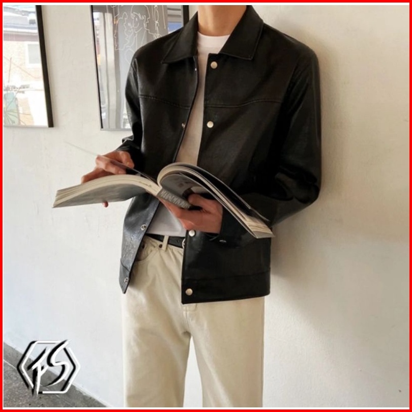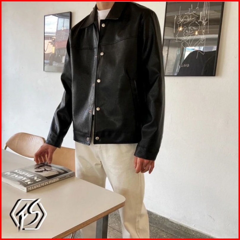 Jaket Kemeja Semi Kulit Oversize Pria.