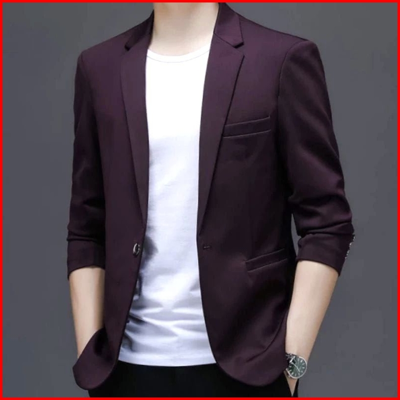 Jas Blazer Pria Jas Semi Formal Slimfit Saku Tanpa Tutup Untuk Pria Hitam Navy Marun