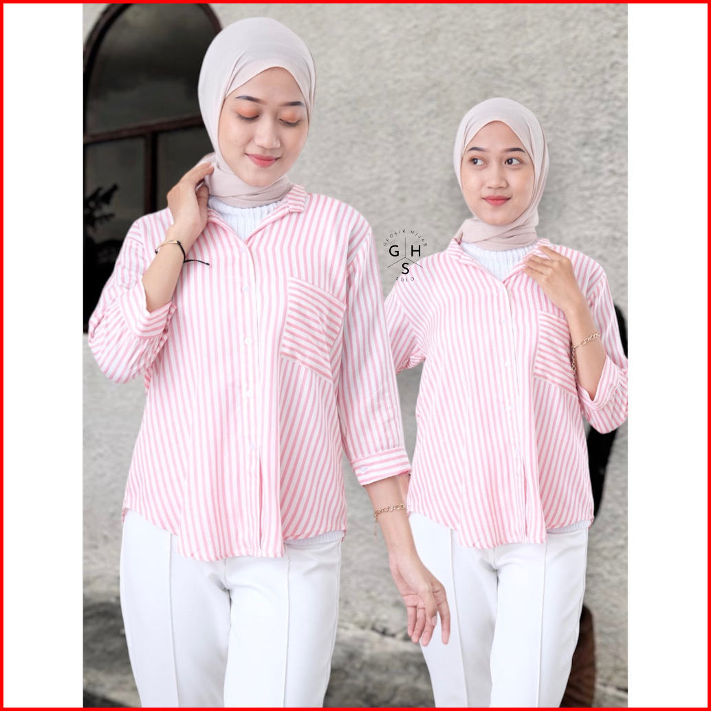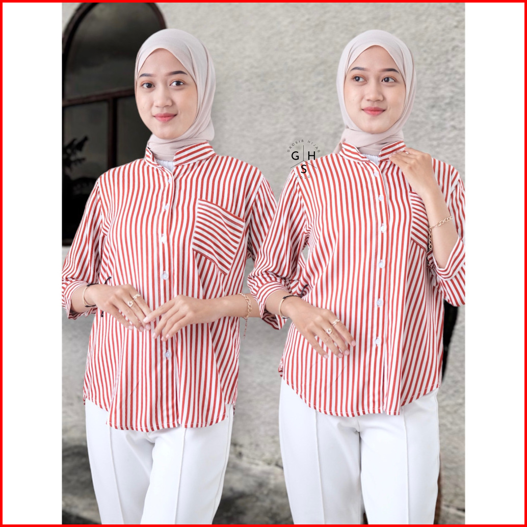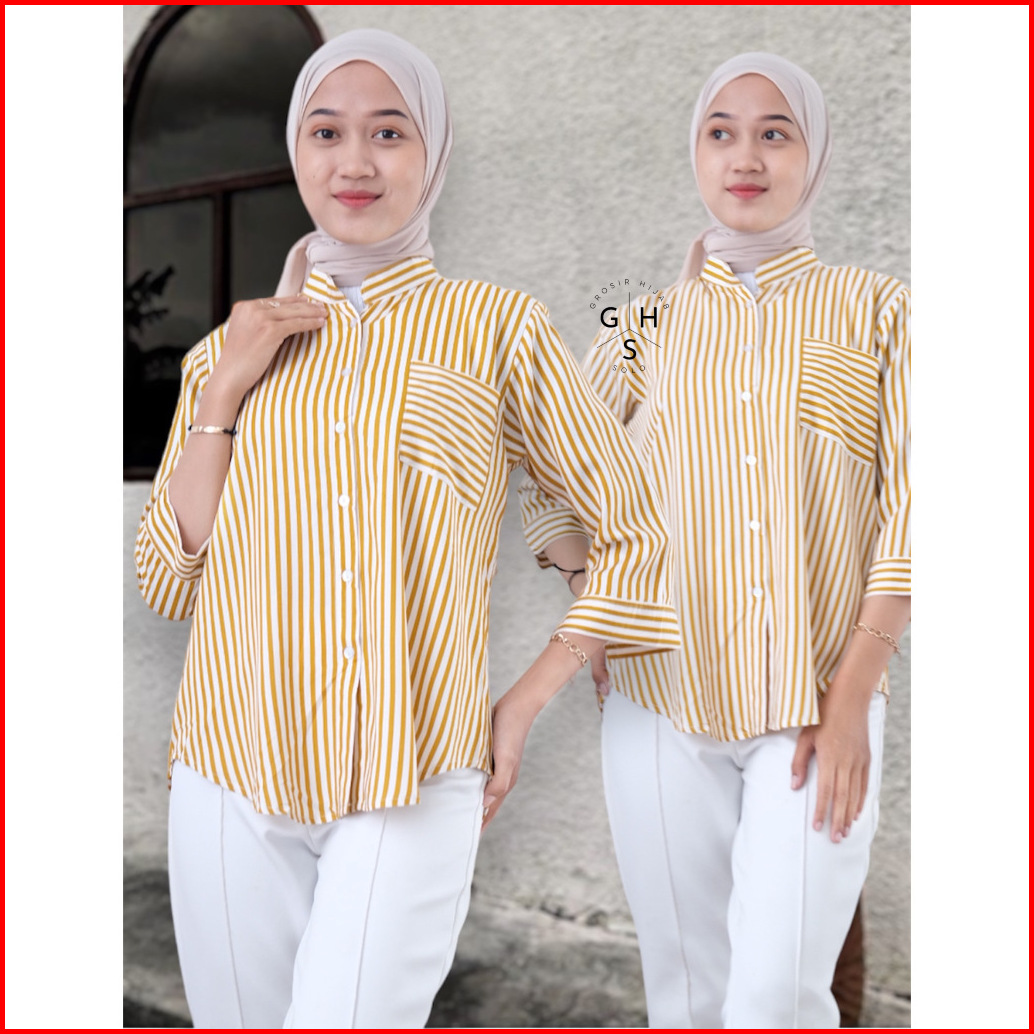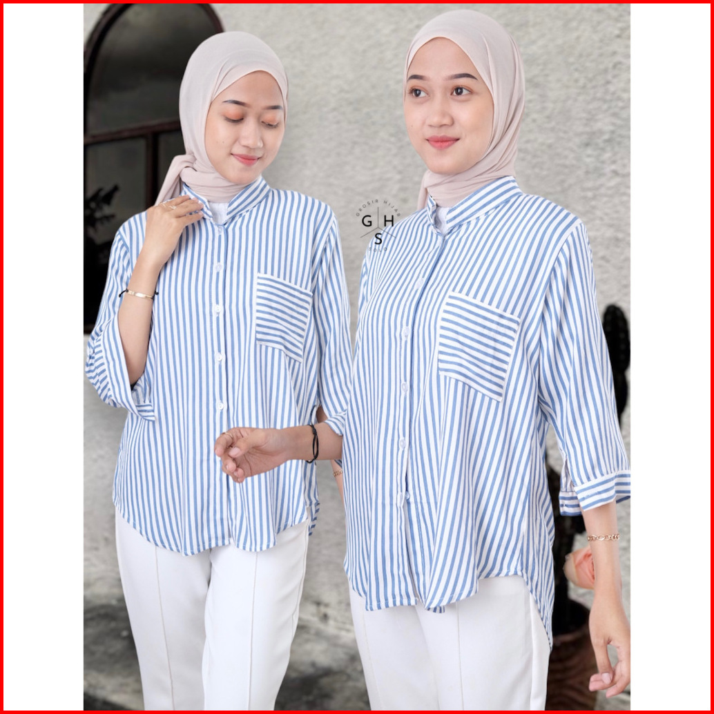 Kirani Daily Kemeja Kerah Top Great Stripe Blouse Salur Atasan Wanita Rayon Premium Msb Grosirhijabsolo