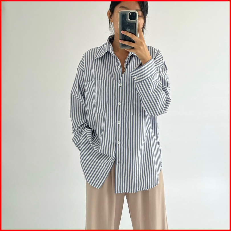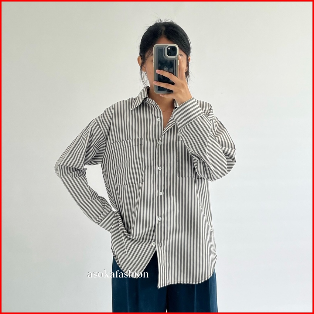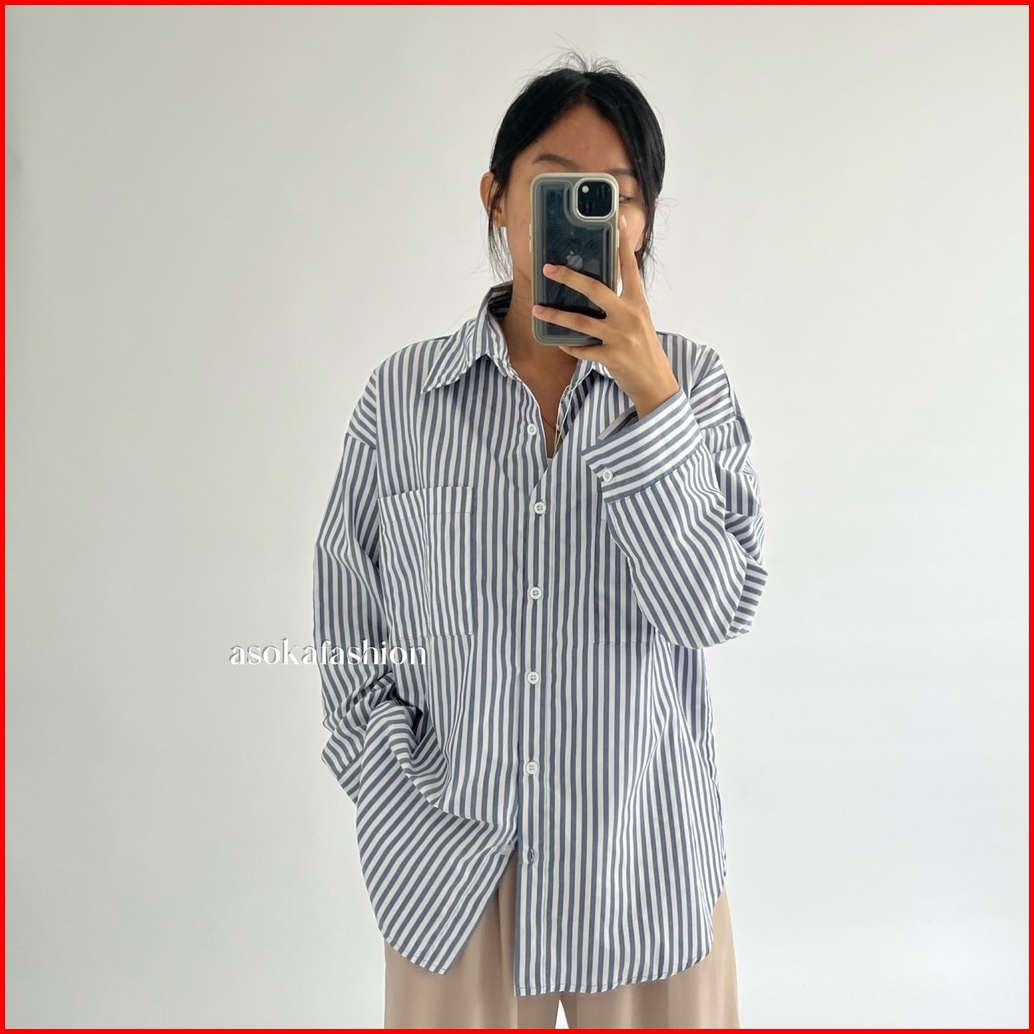 Asoka Amarine Shirt 2164 - Kemeja Salur Kecil - Kemeja Oversize - Pocket Shirt