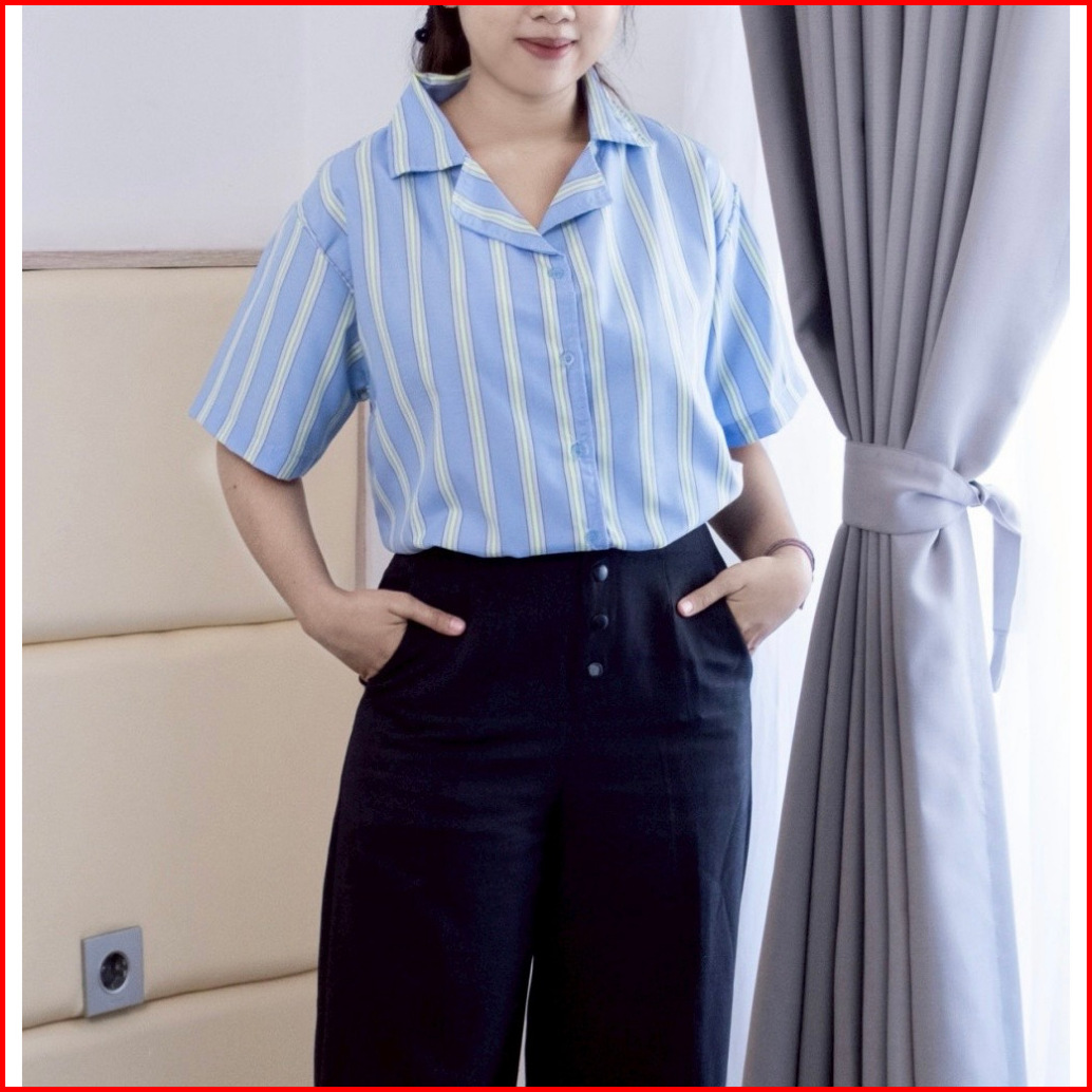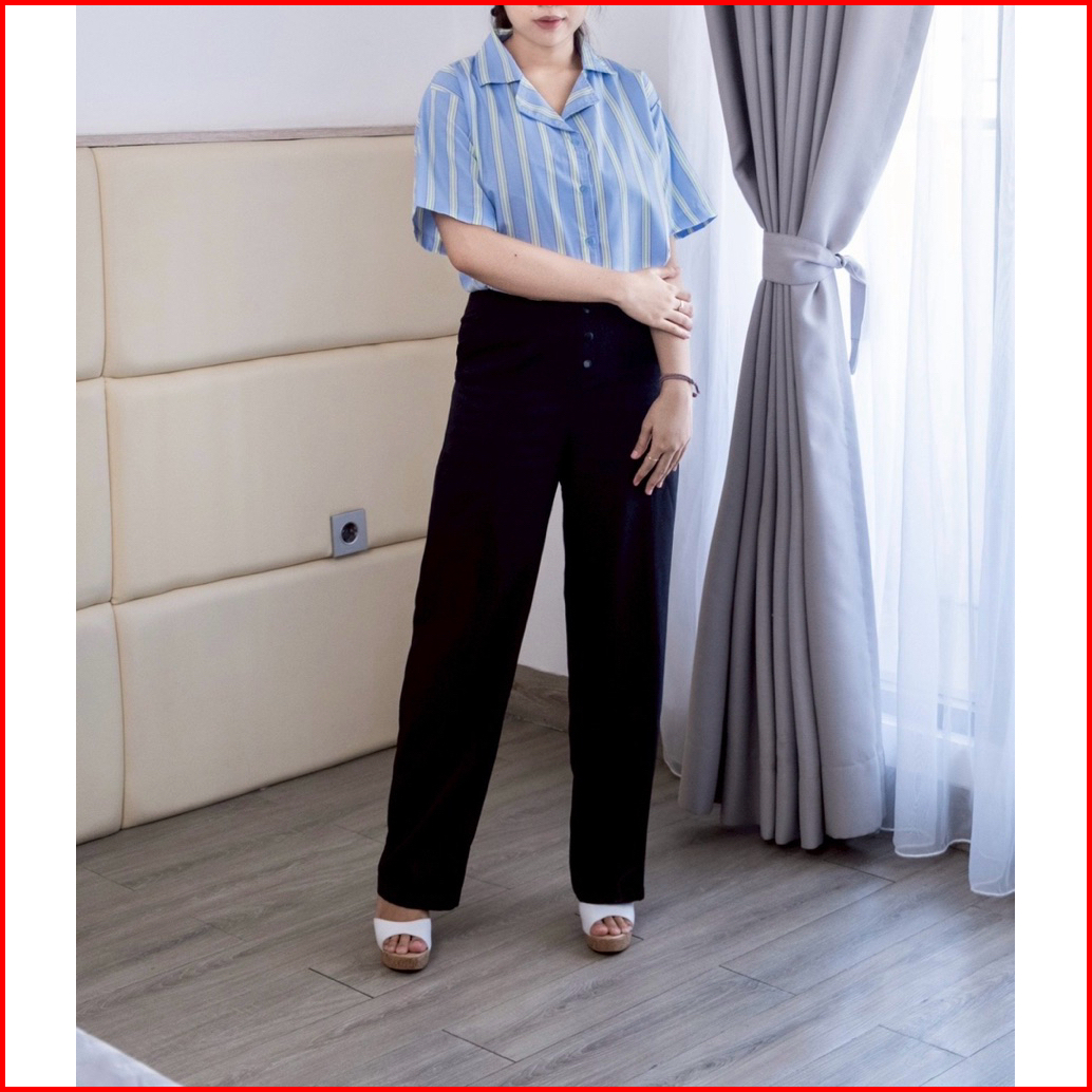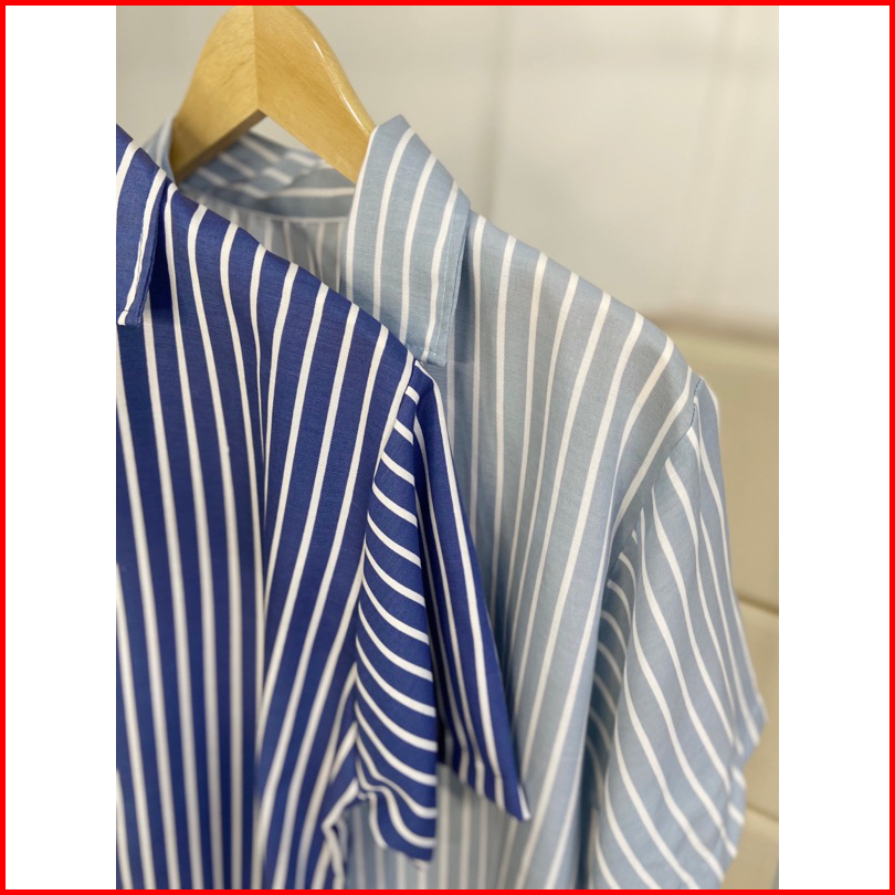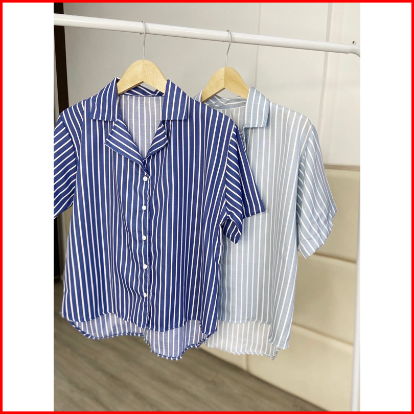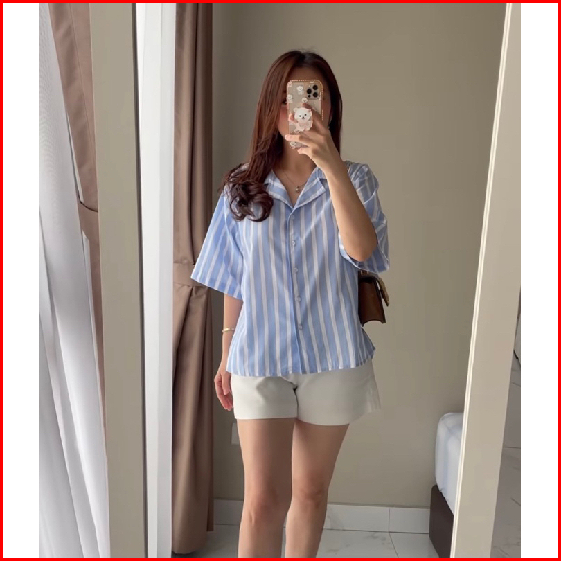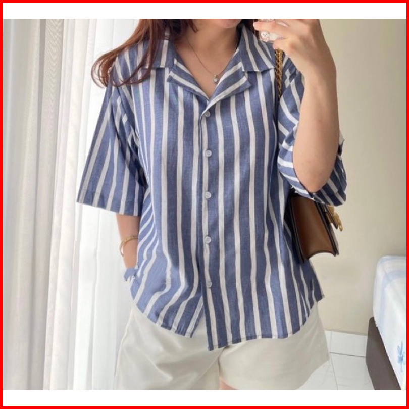 Atasan Casual Wanita Viona Stripe Shirt Vneck Korean Shirt