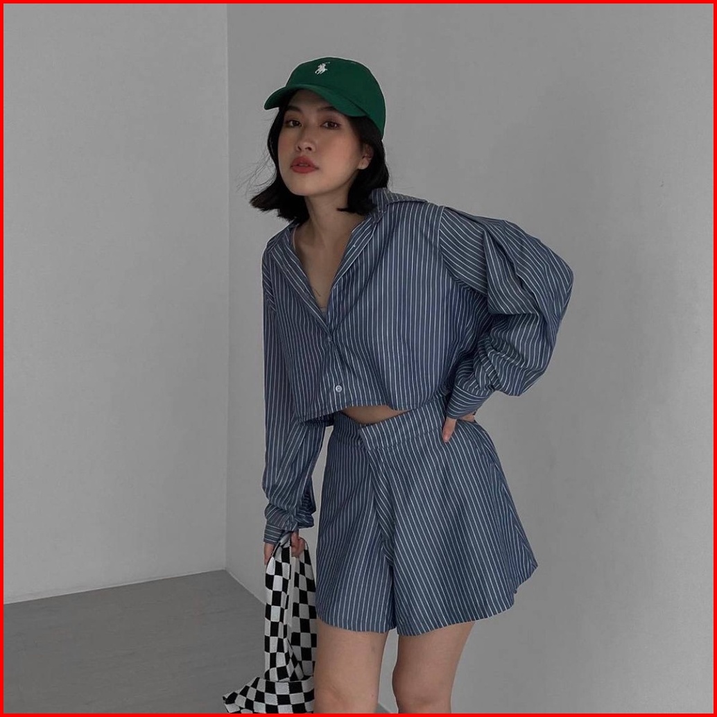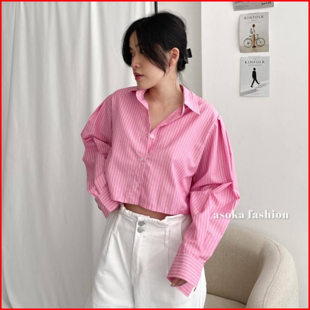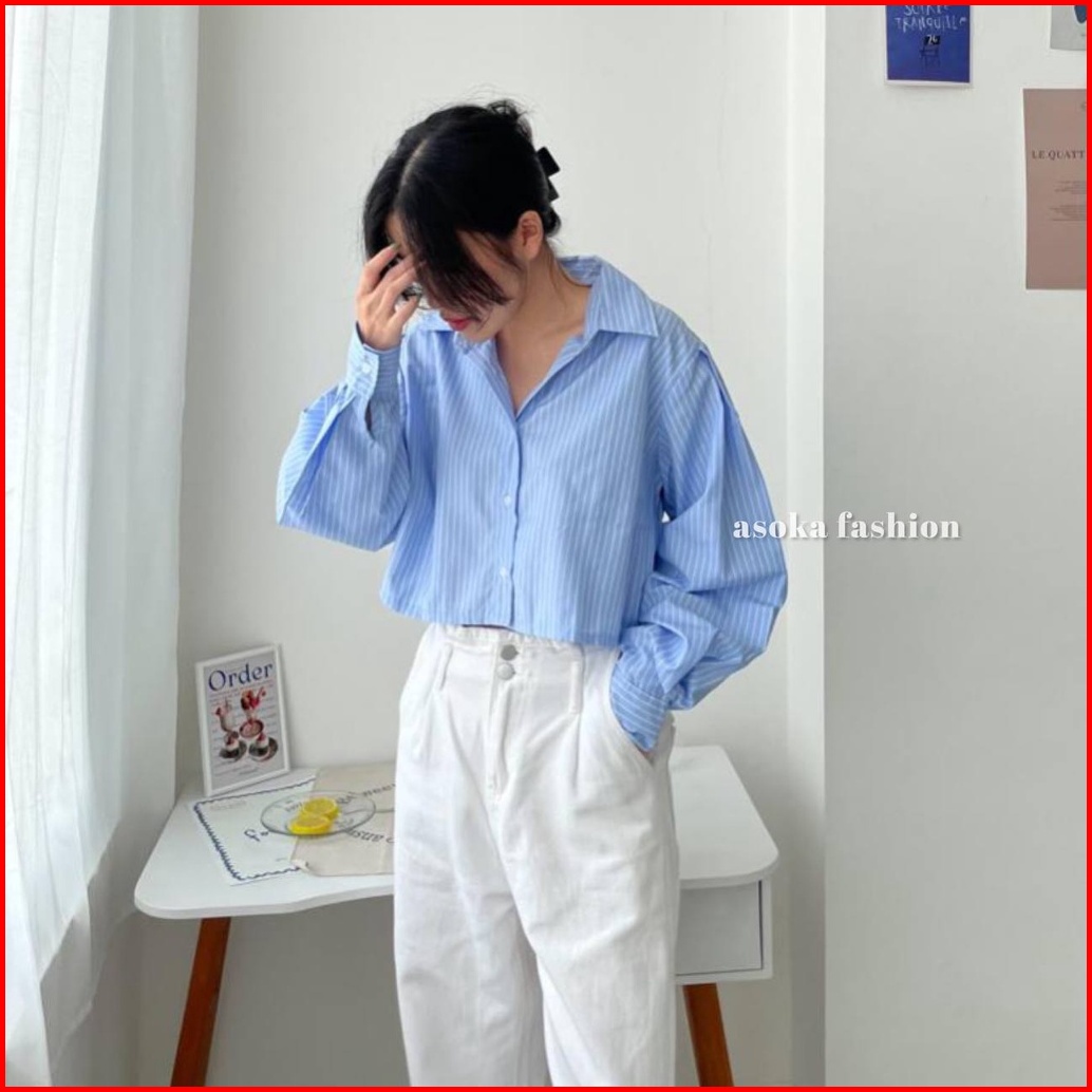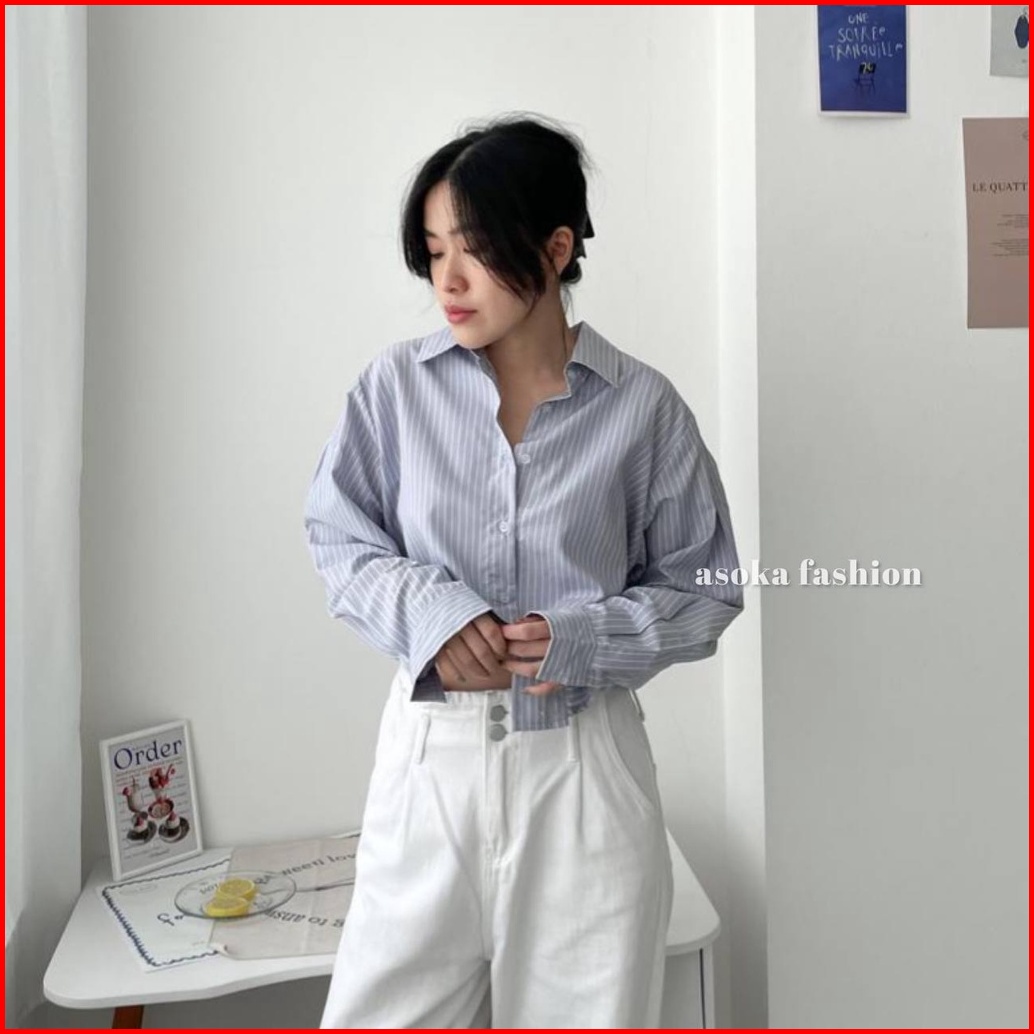 Asoka Esther Top 2136 - Kemeja Crop Wanita - Atasan Wanita Stripe Shirt