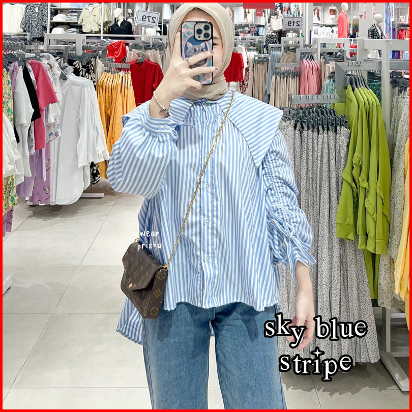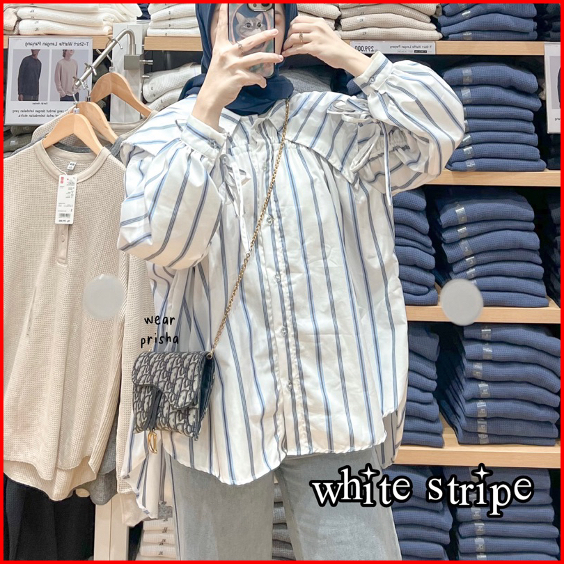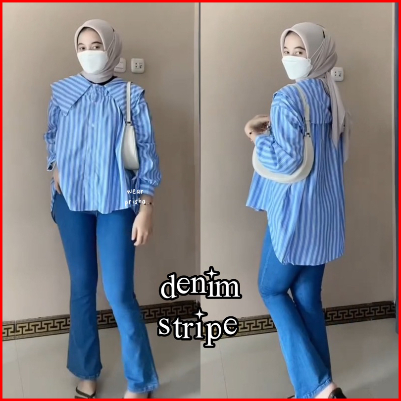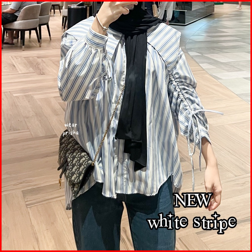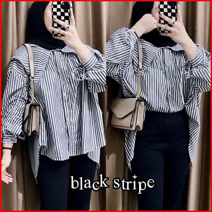 Elma Oversized Stripe Shirt Kemeja Wanita Formal Premium Motif Garis Jumbo Big Size