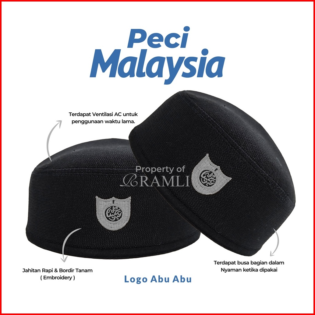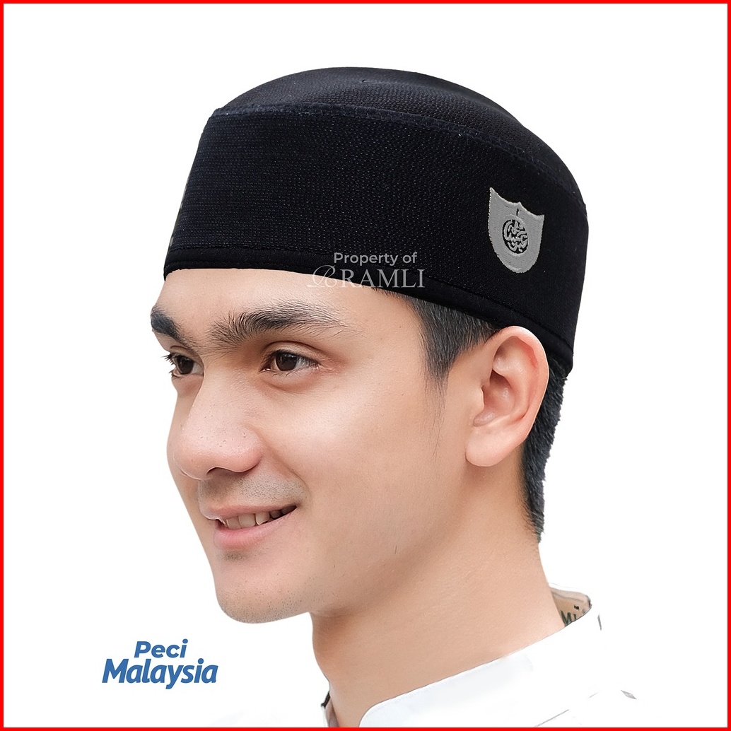 Ramli Peci Songkok Malaysia Hitam Logo Abu