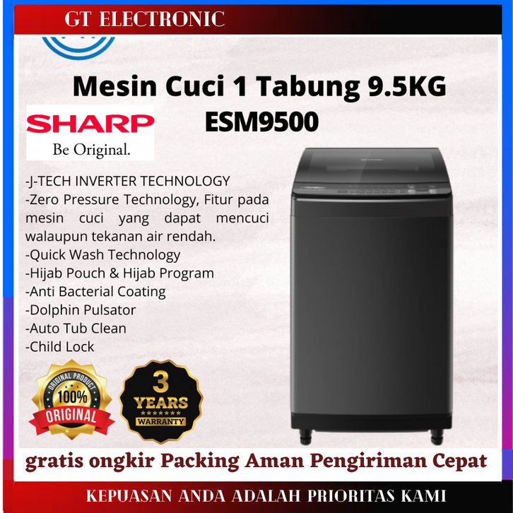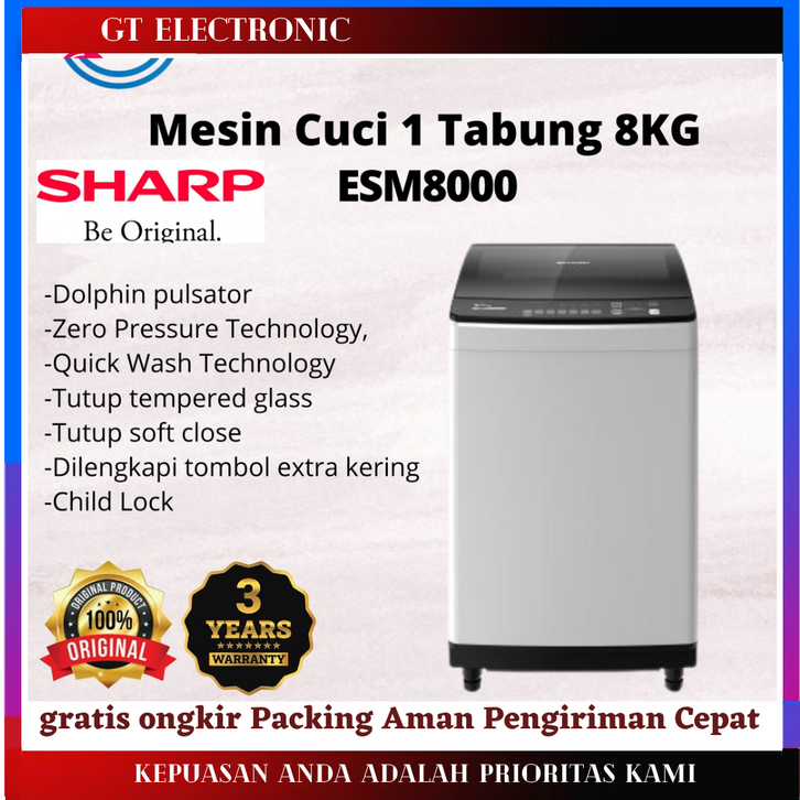 MESIN CUCI SHARP [ 8 KG / 8.5kg / 9.5 kg ]- 1 TABUNG ESM8000/ESM8500/ESM9500 TOP LOADING