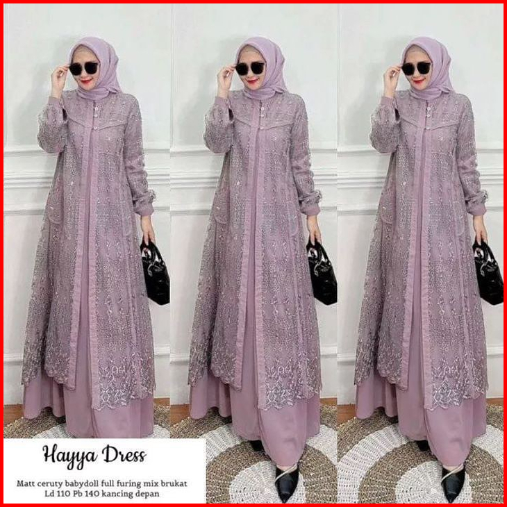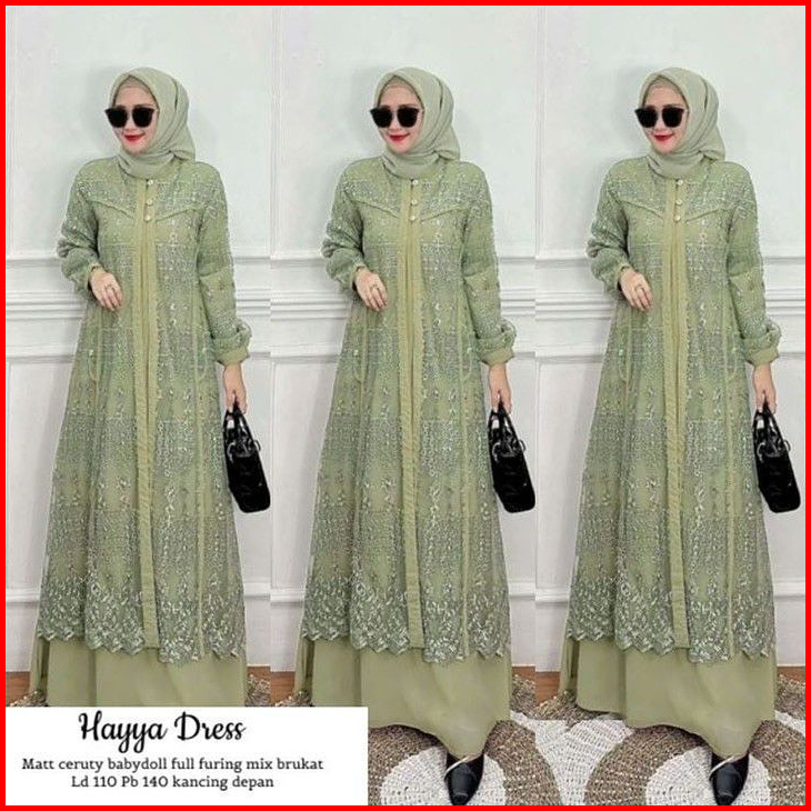 Gamis Wanita Terbaru Hayya Dress Wd Bahan Ceeruty Mix Brukat Size M L Xl Xxl Xxxl Gamis Cantik Modern Elegan Jumbo Kekin