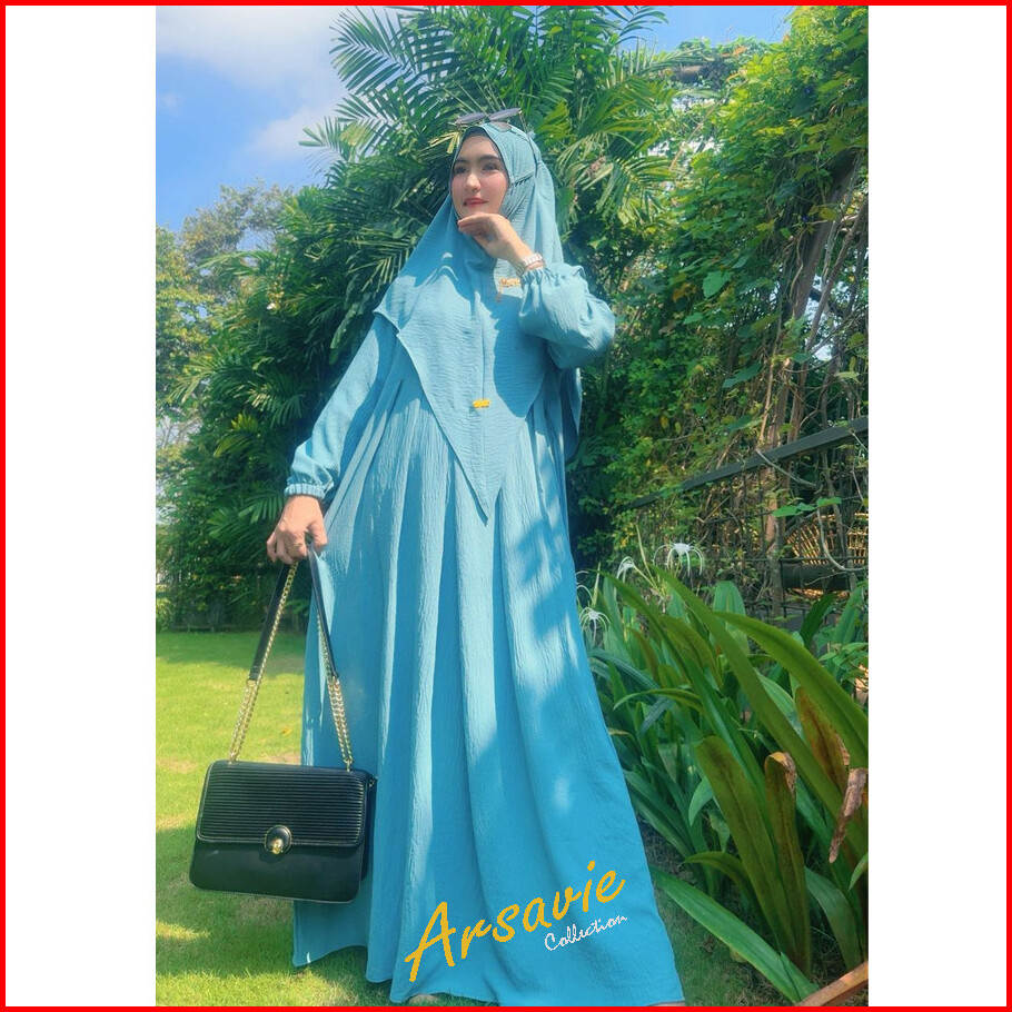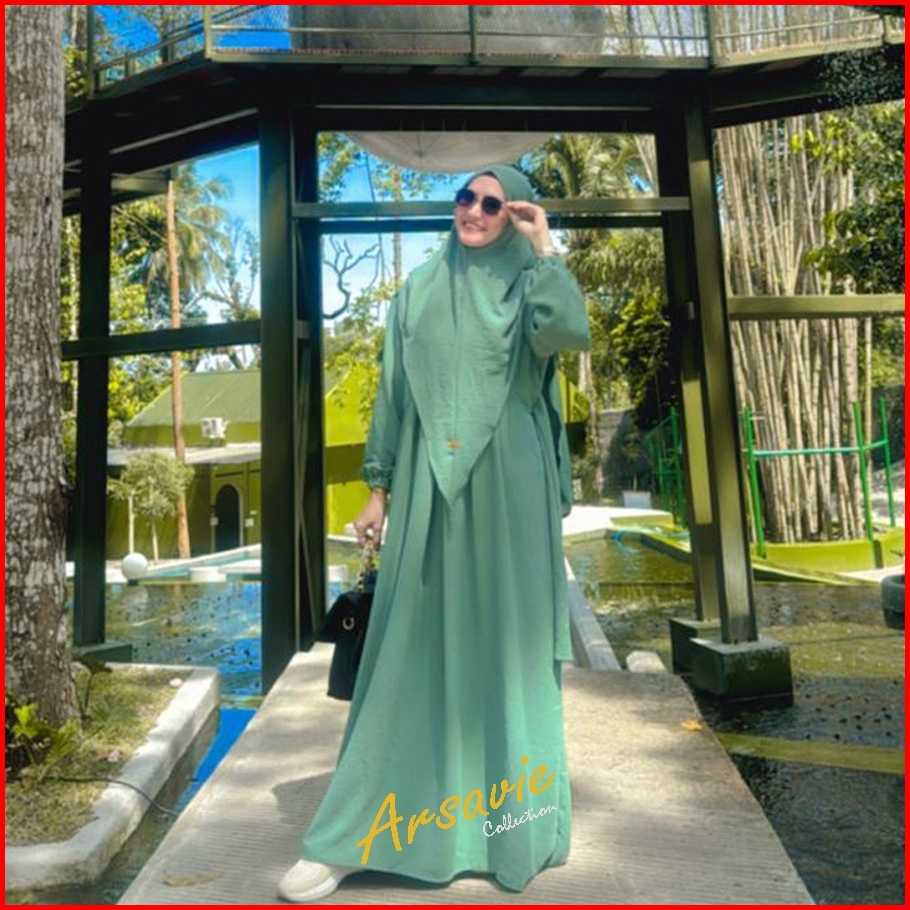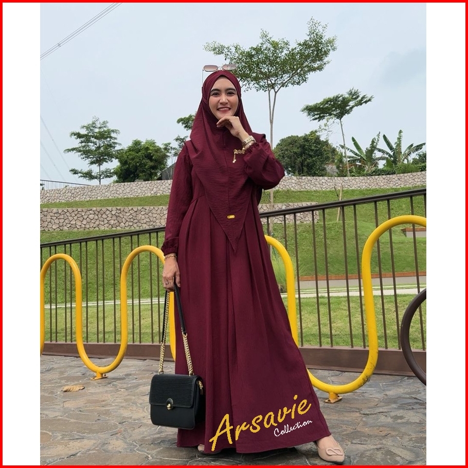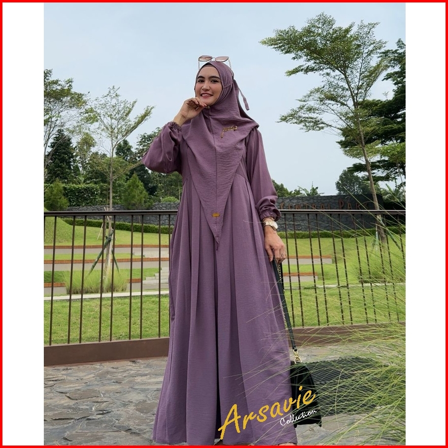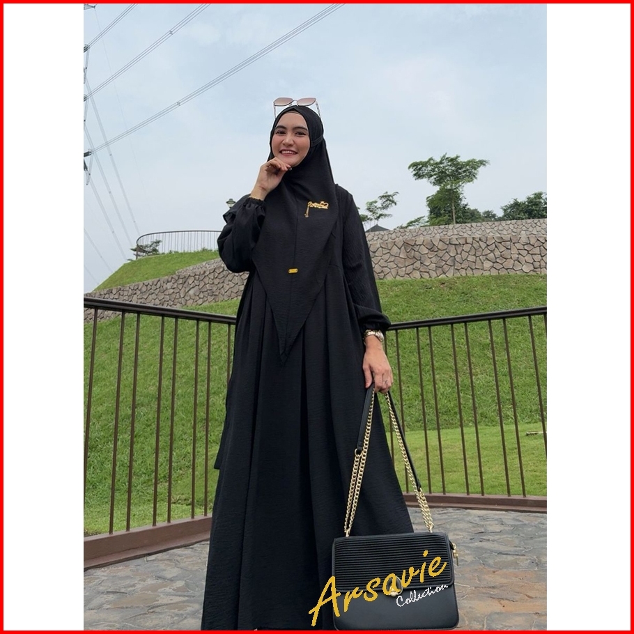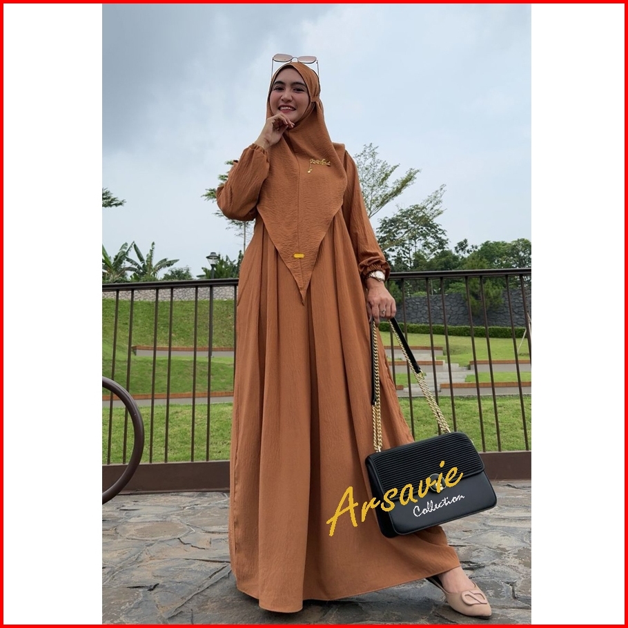 Gamis Set Hijab Arsavie Crincle Airflow Premium