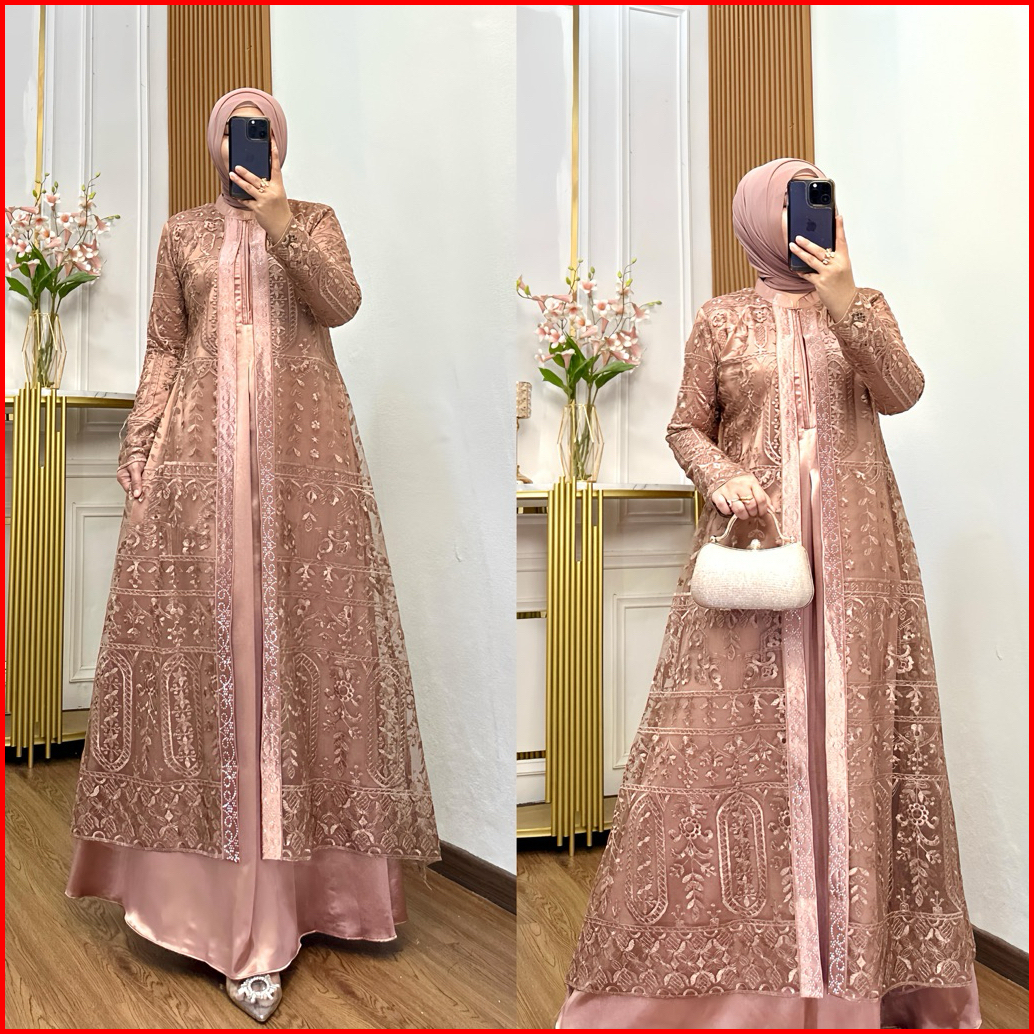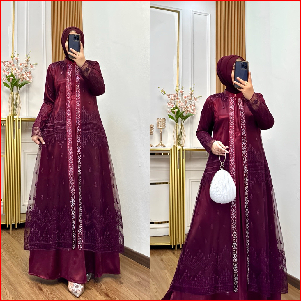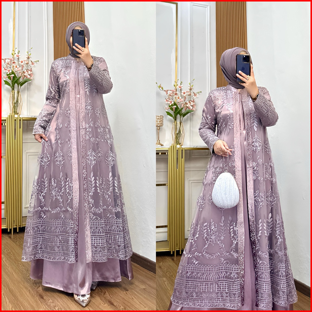 Nadira Dress Busui Bahan Organza Bordir Dengan Detai Payet Mote Gamis Pesta Baju Kondangan Mewah Tersedia Ukuran Jumbo
