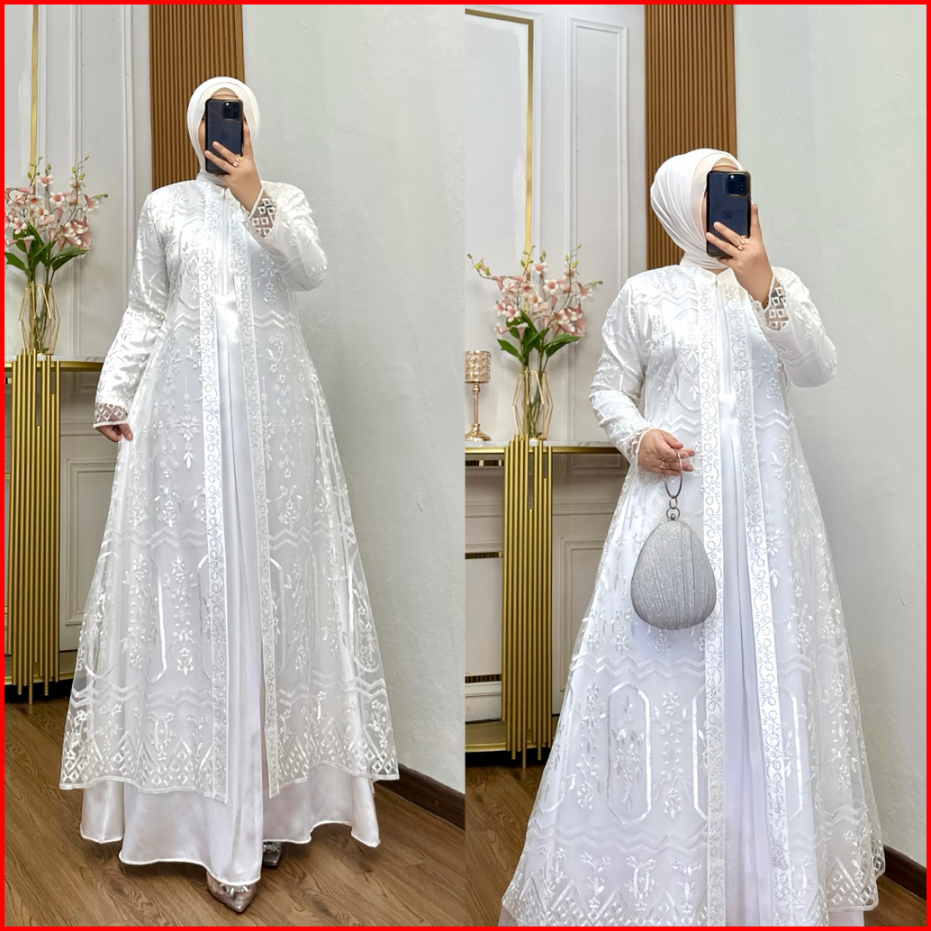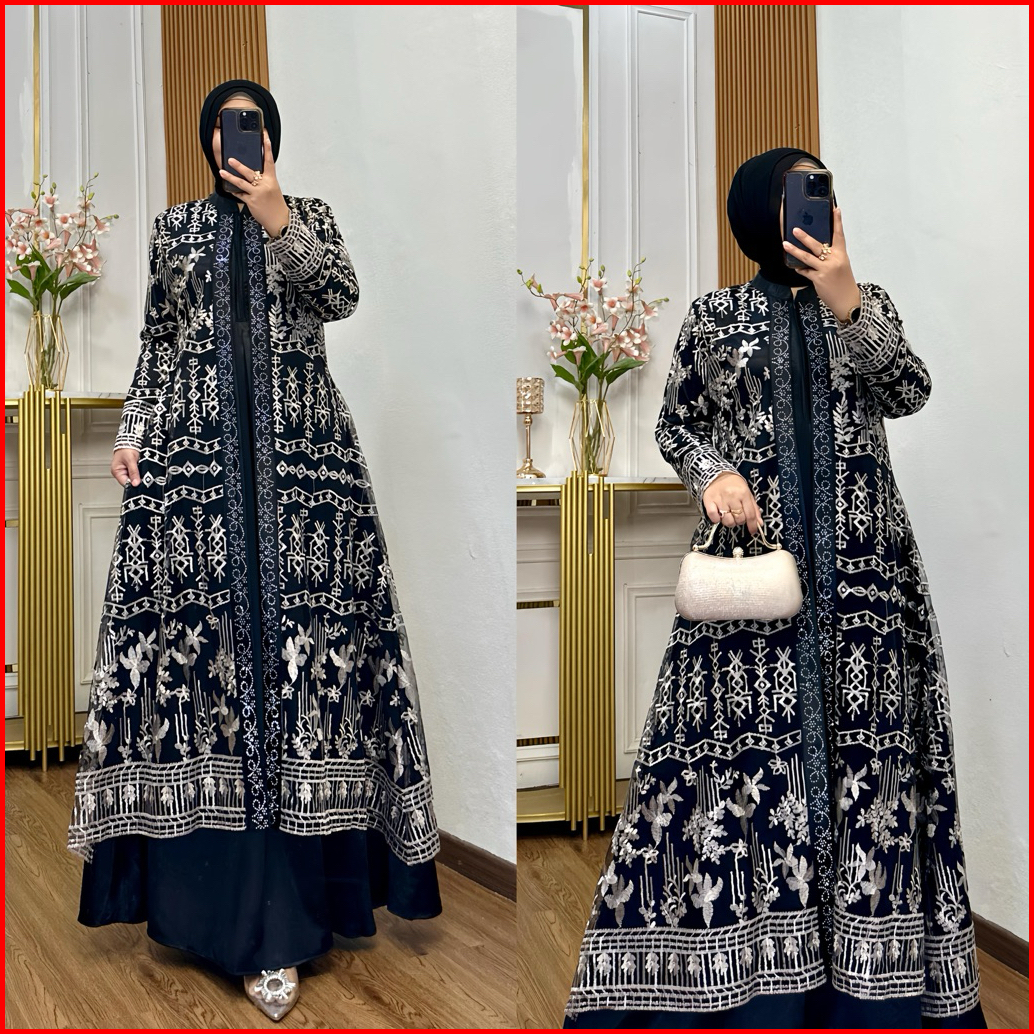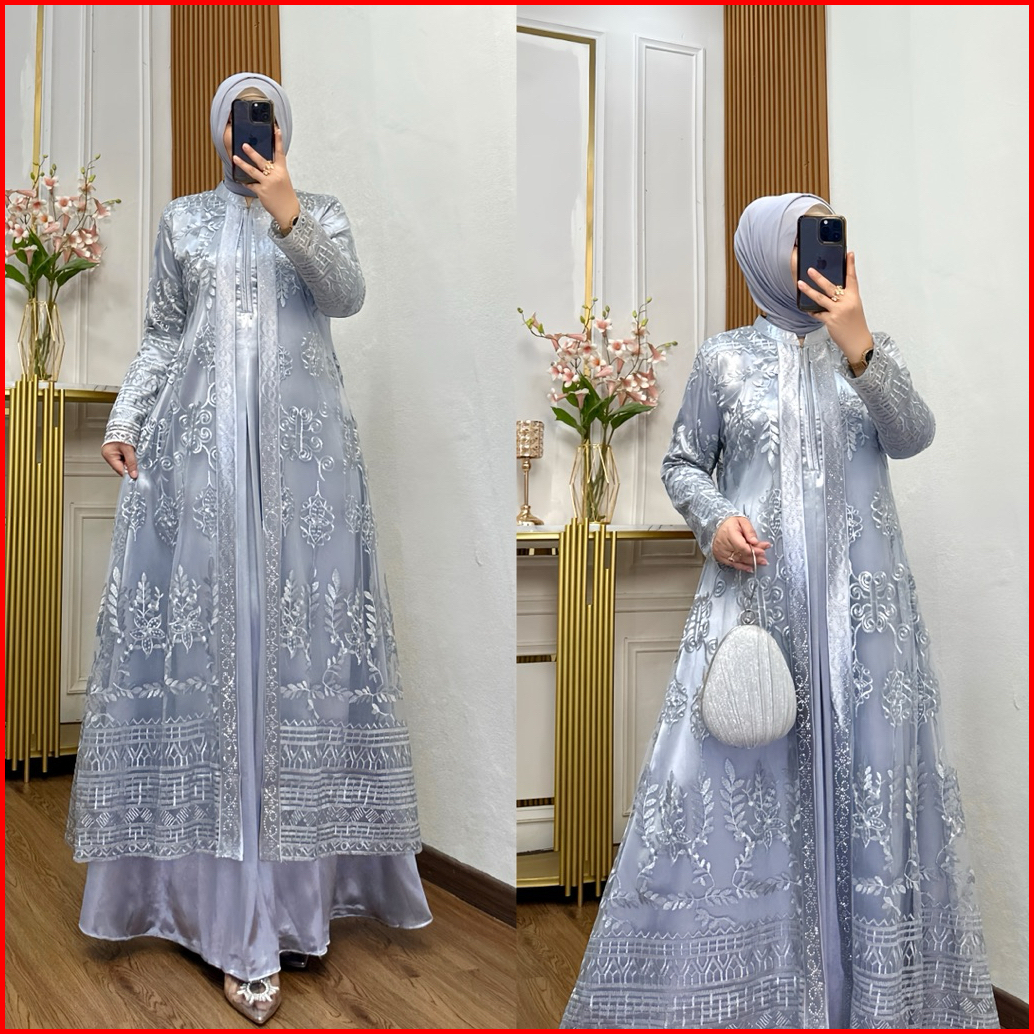 Nadira Dress Busui Bahan Organza Bordir Dengan Detai Payet Mote Gamis Pesta Baju Kondangan Mewah Tersedia Ukuran Jumbo