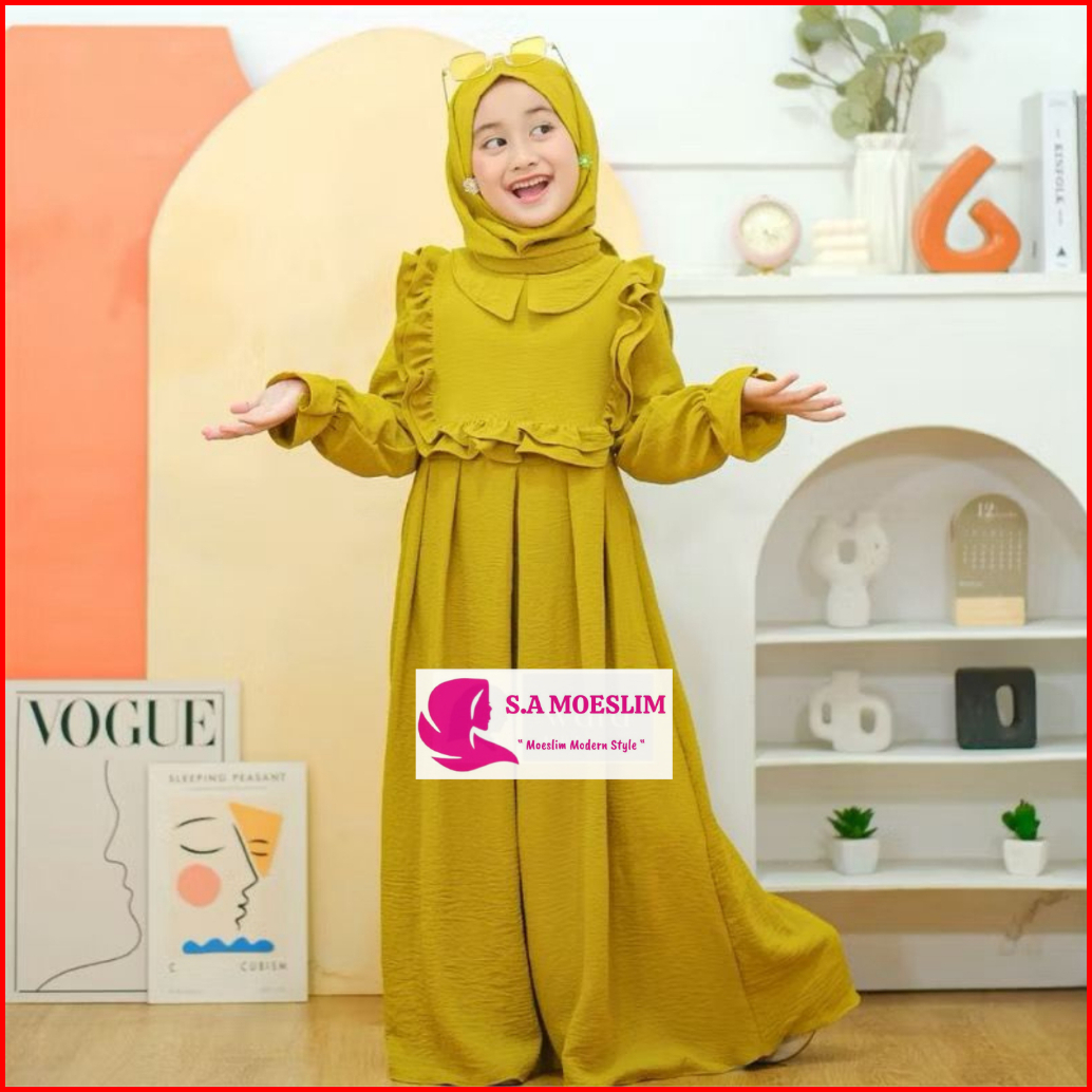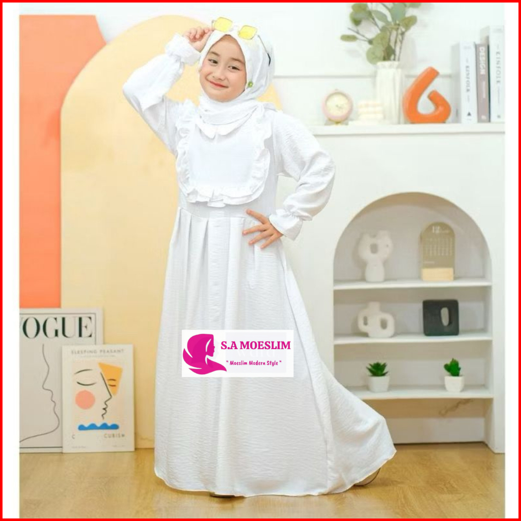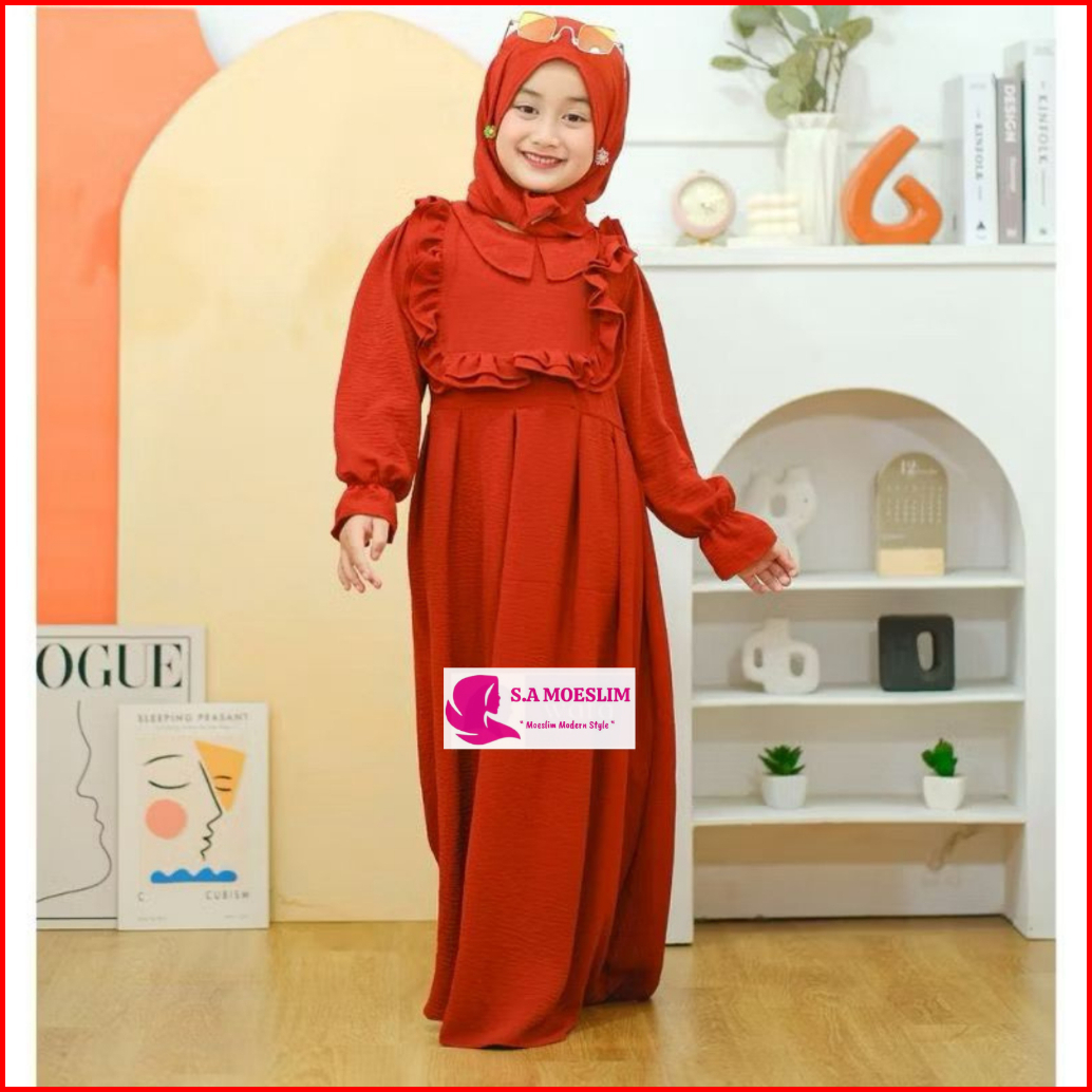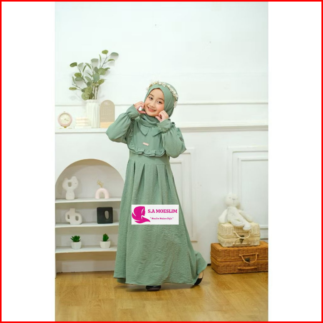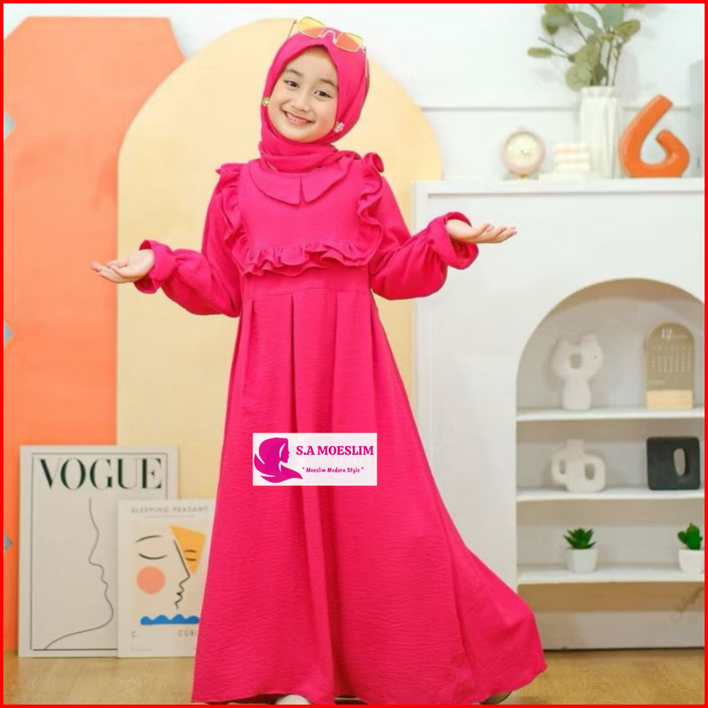 S.a Moeslim Alesha Dress Gamis Anak Perempuan Remaja Kerah Crincle Airflow Usia 2 -14 Th Baju Gamis Anak 2-10 Tahun Crin