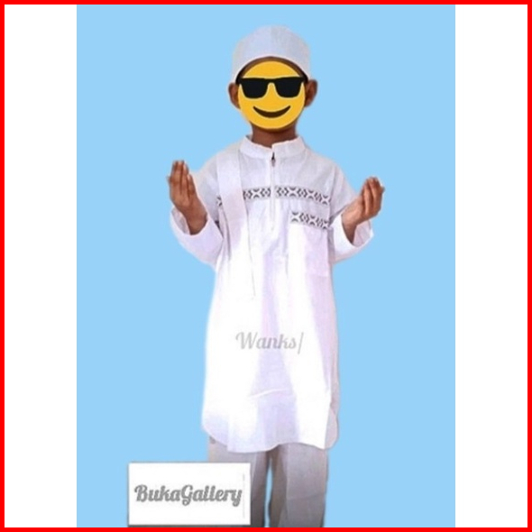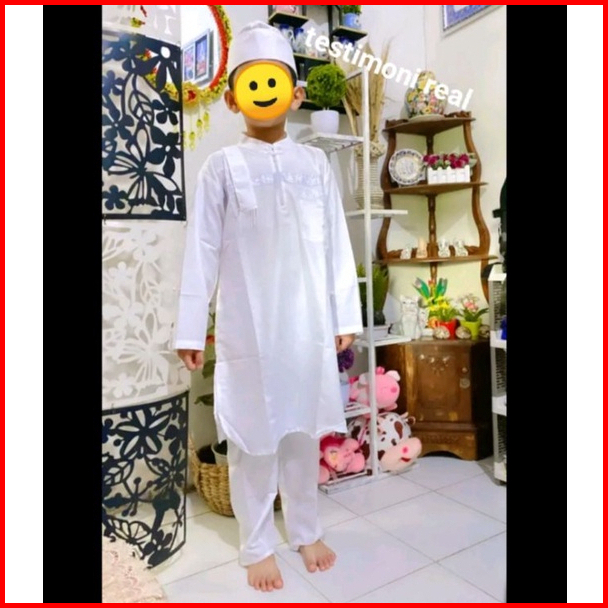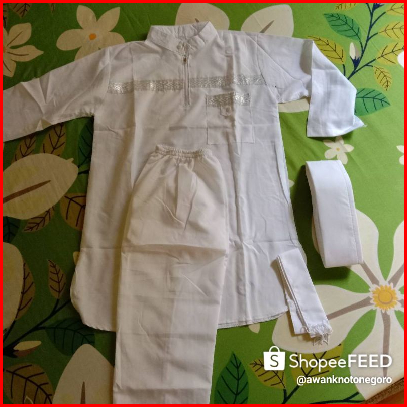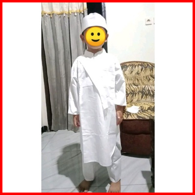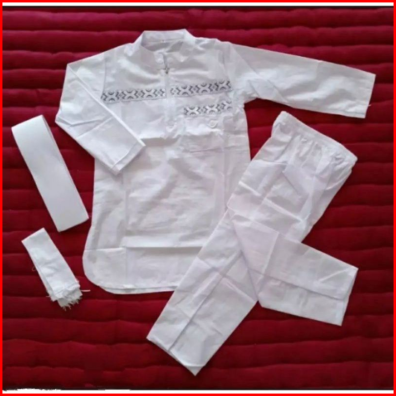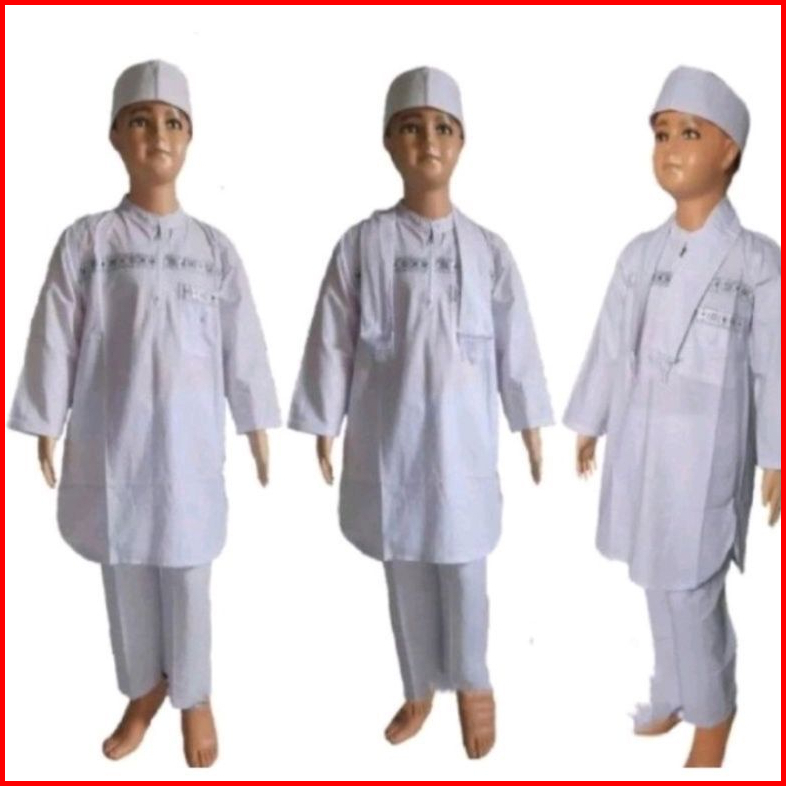 Setelan Baju Manasik Koko Anak Laki-laki Putih Pakistan