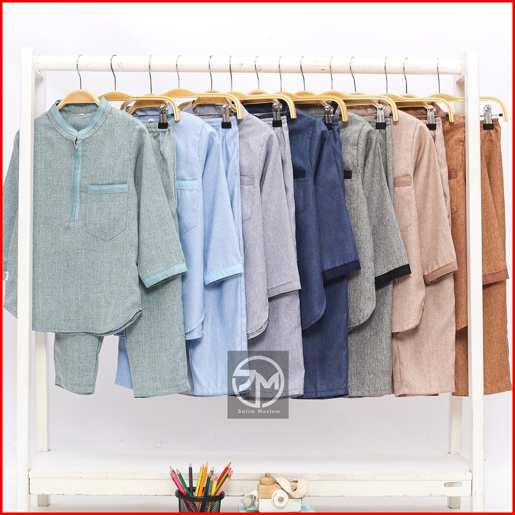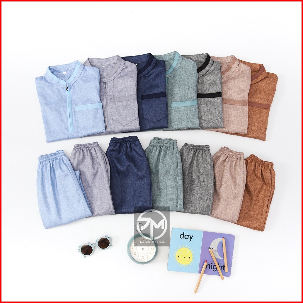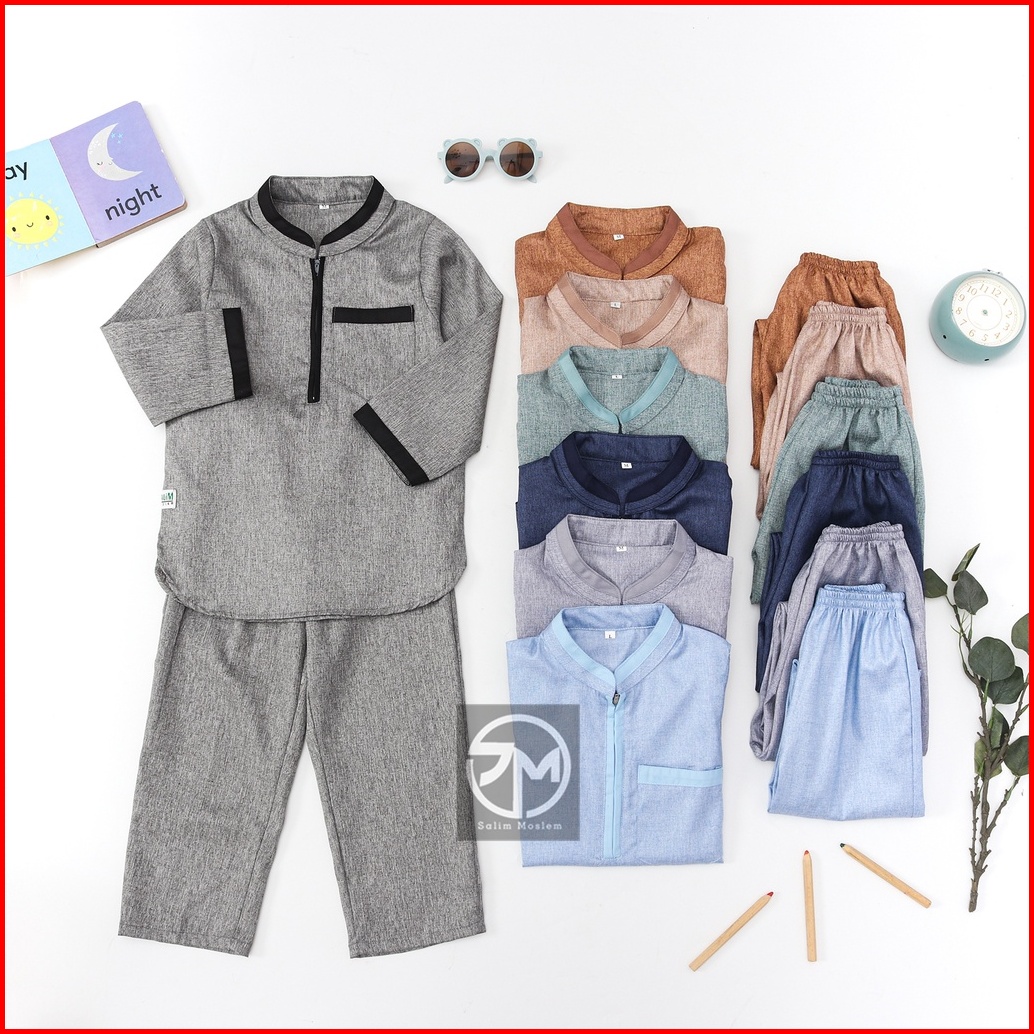 Salim Moslem Koko Anak Laki-lak Koko Set Anak Lengan Panjang List Baju Setelan Anak Laki-laki Katun Madina 1-12 Tahun
