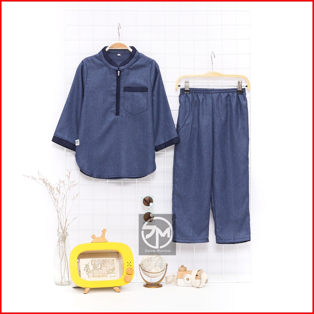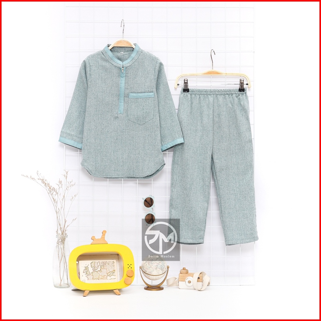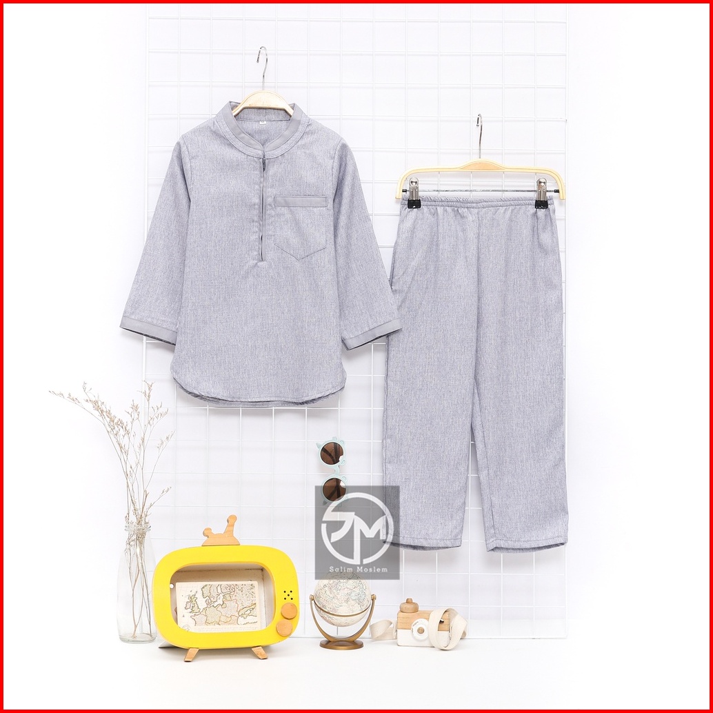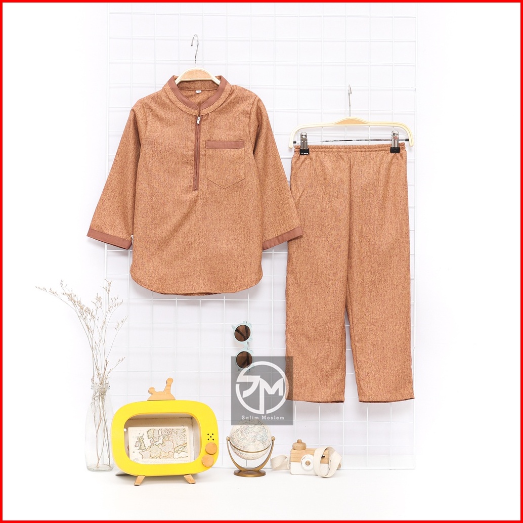 Salim Moslem Koko Anak Laki-lak Koko Set Anak Lengan Panjang List Baju Setelan Anak Laki-laki Katun Madina 1-12 Tahun