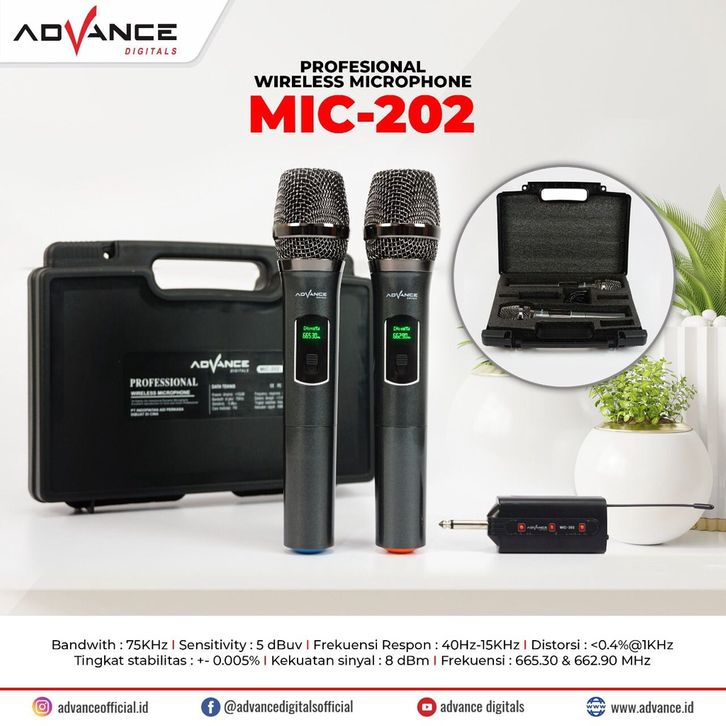 Advance MIC-202 / MIC-203 Profesional 2 Mic Wireless Microphone Karoke Mic Duet - Mic Double Karaoke ADVANCE 202 / 203 M