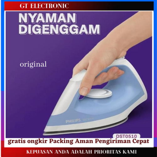 Setrika Philips DST0510/HD1772/TURBO EHL3038 / HD1773 - Setrika Listrik Dry Iron Anti Lengket Free Gantungan Baju Lipat